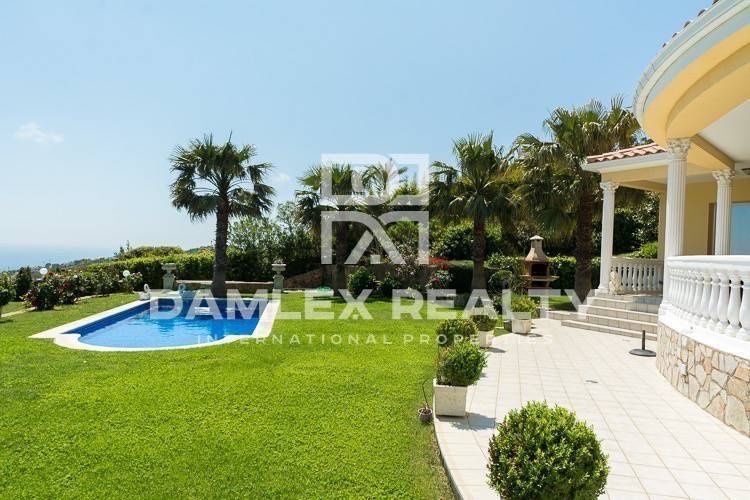 Предлагаем новую виллу с видом на море, расположенную на холме, в элитном поселке Мас Ноу города Плайя де Аро. Вилла в один этаж, но при этом очень просторная, с большими комнатами и окнами в пол. Площадь дома составляет 457 м2, которая распределена следующим образом: 5 спален, 3 ванных комнаты, гостиная со столовой оной и камином, и выходом на террасу, полностью оборудованная кухня, гараж на 2 машины, кладовая. В доме есть отопление, кондиционирование. Особо нужно отметить ровный участок площадью 1564 м2 с бассейном и великолепным садом, в саду обустроена зона для барбекю.