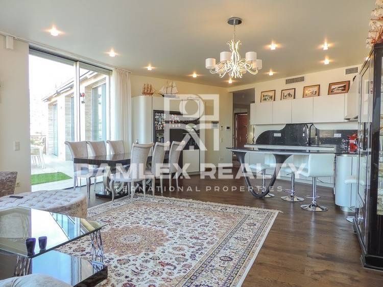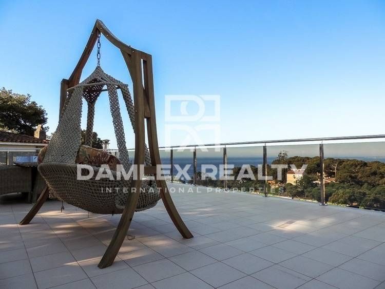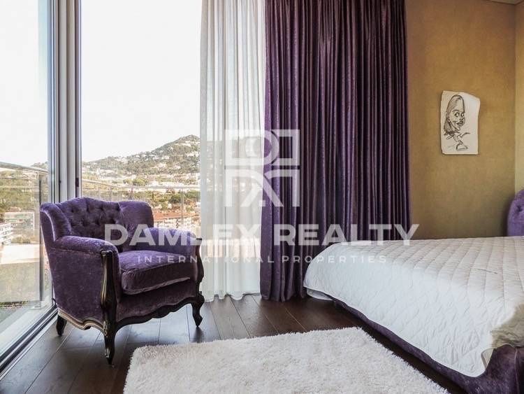 Новая современная вилла, расположенная на холме в 500 метрах от городской инфраструктуры. Дом имеет прекрасный панорамный вид на море и бухту, находится в одном их лучших поселков курортного города Льорет де Мар, побережье Коста Брава. Вилла была построена в 2014 году, имеет современное техничесоке оснащение. Дизайн виллы не перегружен лишними архитектурными деталями, фасад дома выполнен из мрамора Травертино, что очень практично, так как дом всегда будет иметь современный и ухоженный вид.Дом в три этажа: два жилых этажа и цокольный этаж, где находятся технические помещения и гараж. На первом жилом этаже находится большая просторная гостиная с кухней, 2 большие спальни, кабинет, ванная комната, прихожая. На втором этаже большой мастер суит с гардеробной и ванной комнатой, тренажерный зал, и две большие террасы. Вилла полностью меблирована, есть лифт, сигнализация, сад с бассейном. Дом полностью готов к проживанию.Расстояние до Барселоны 60 км, до Жироны 35 км. Город Льорет де Мар является крупным курортом побережья Коста Брава. В городе развитая инфраструктура, которая позволяет проживать с комфортом круглый год. В радиусе нескольких километров находится множество исторических и природных памятников. В 2-х часах езды на машине располагаются горнолыжные курорты Андорры. Удобная транспортная связь с Барселоной и Францией, также является большим плюсом при выборе места для отдыха или проживания в Испании.