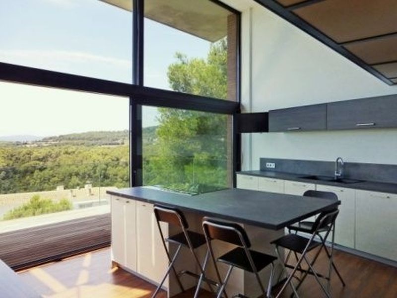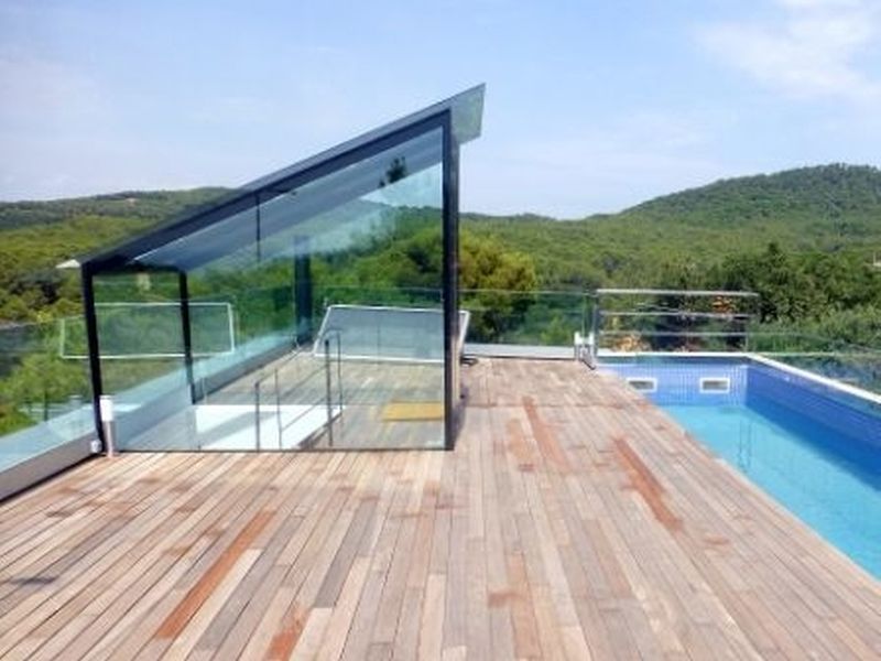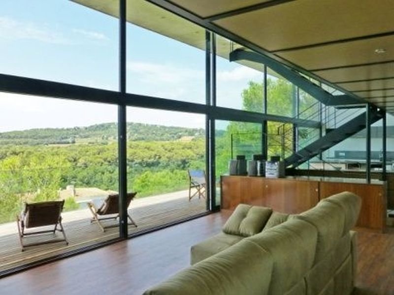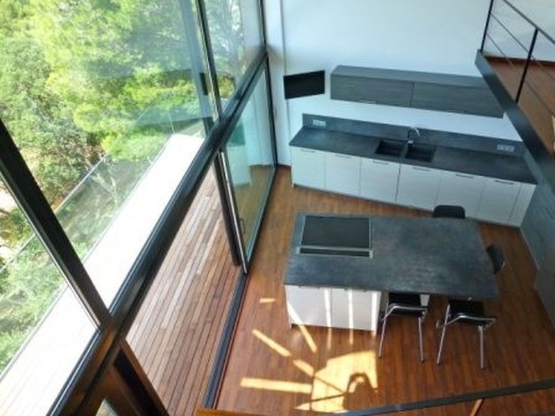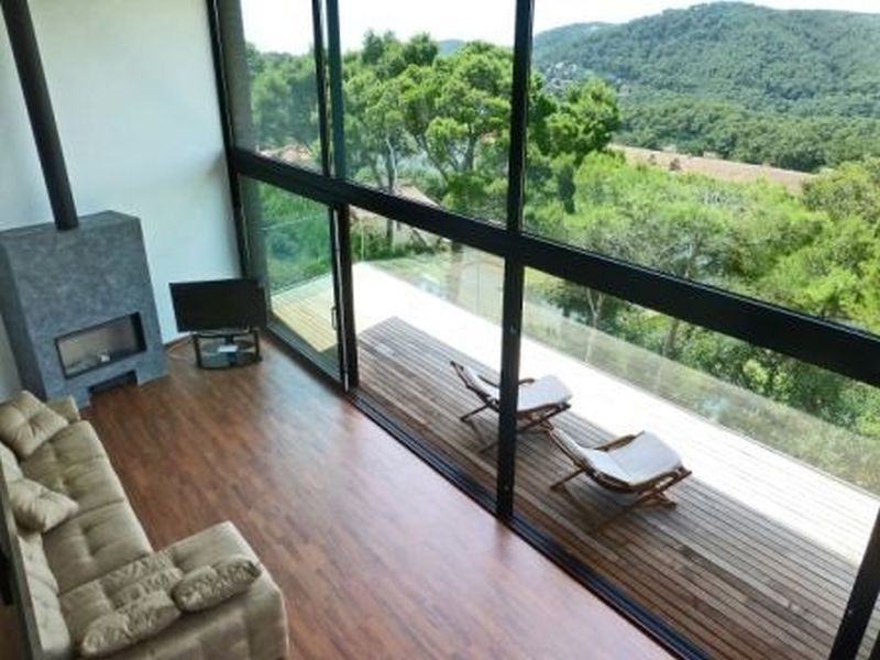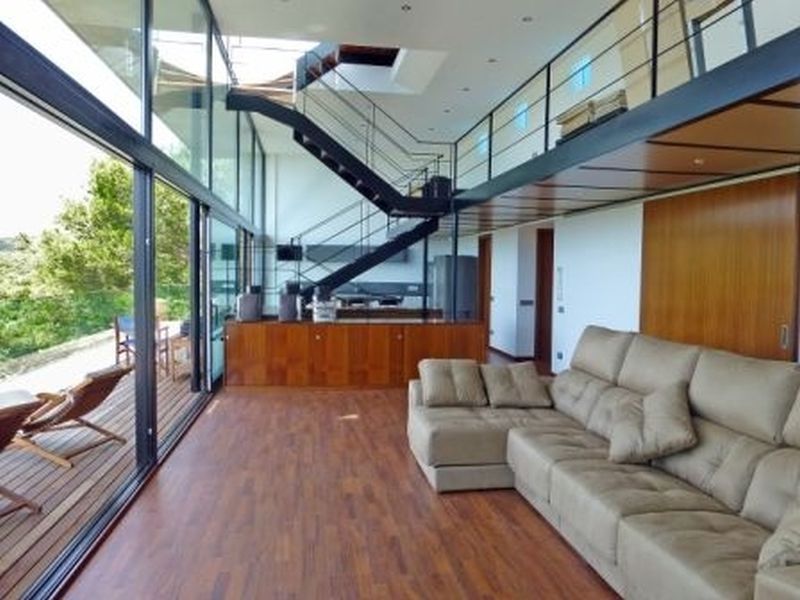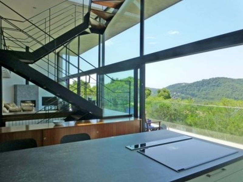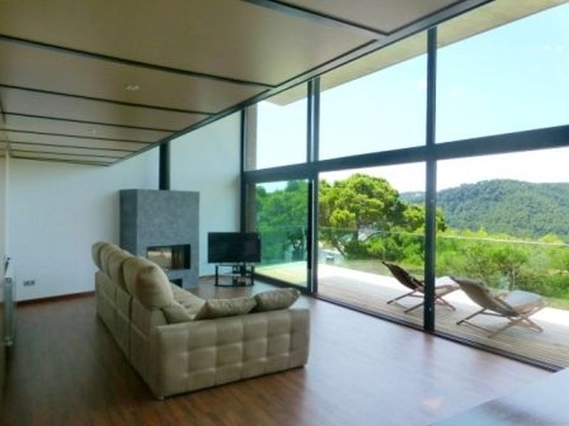 1 km from the beach and promenade in the city Tamariu. Functional yet luxurious building of modernist style. With a total area of 350 m2 on a plot of 800 m2. Two floors, Solarium with deck tropical wood and pool on the top floor. Spacious living room with fireplace, open kitchen with island in the middle, five spacious bedrooms (one of which categories Suite), four bathrooms. Several terraces, pool and garden.
