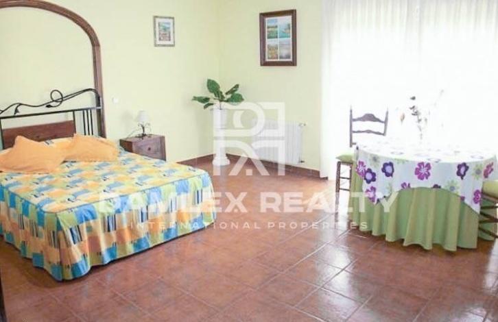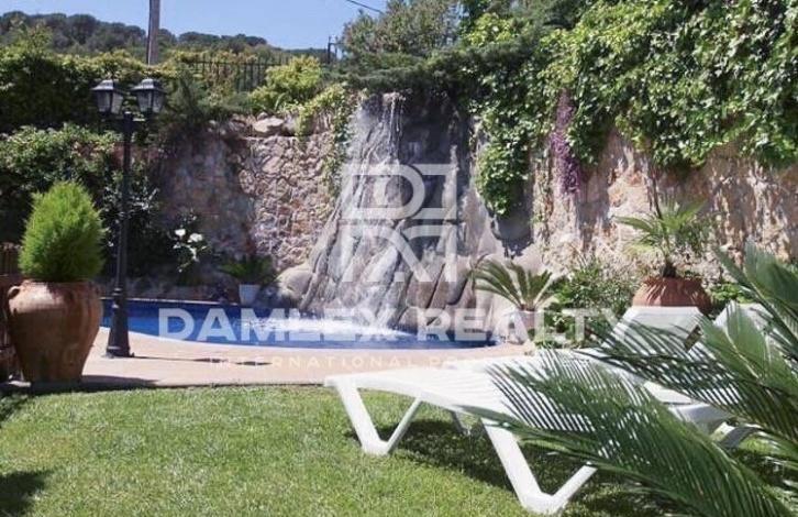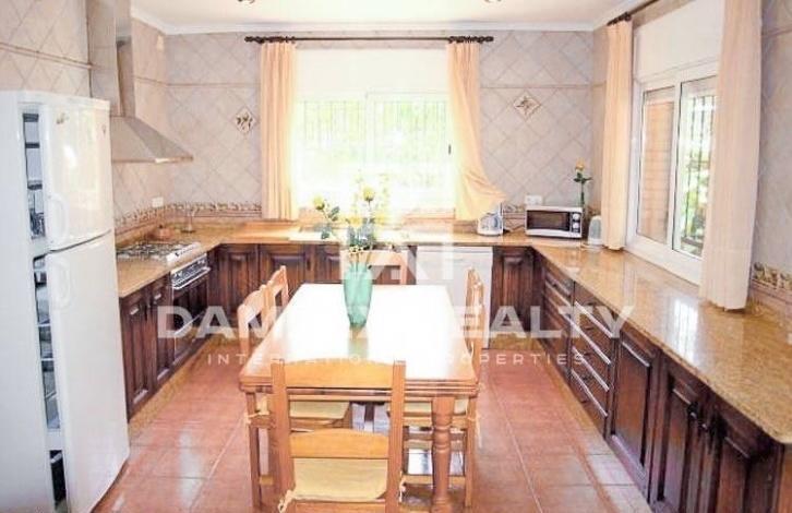 Villa in the town of Lloret de Mar is located in a calm, quiet urbanization 1 km from the beach. The villa has an area of 200 m2 and is built on a plot of land of 1300 m2 with a large beautiful garden and a pool with a cascade. A natural lawn is planted around the pool. There is also a barbecue area and a summer dining room. The villa is built in one level. Spacious living-dining room with access to the terrace and garden. Large equipped kitchen, 4 bedrooms and 3 bathrooms.