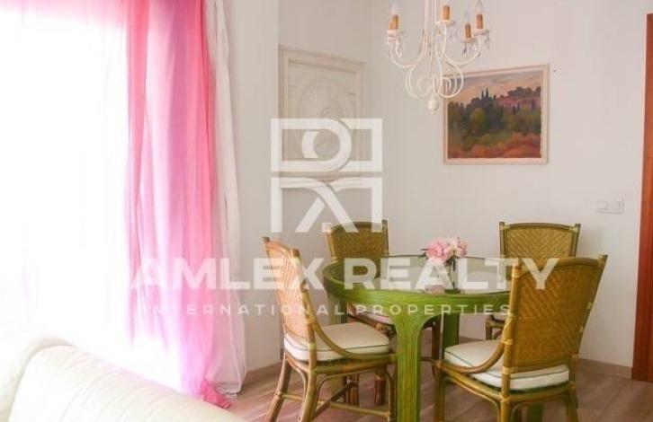 A 180 m2 apartment with a large 86 m2 sun terrace and 3 bedrooms is located just 100 meters from the center of Playa de Aro and just 4 minutes from the beach. Salon-dining room with access to the terrace. The kitchen is equipped with household appliances, as well as has an exit to the terrace. All rooms of the apartments look out onto the street, which makes the apartments very bright. Due to its location on the ground floor of the building, the apartments have a large terrace with a weight that protects from the sun. The apartments are located in a residential complex with a common recreation area for all residents of the complex and with a swimming pool located outside its territory. The apartments are equipped with heating and air conditioning.