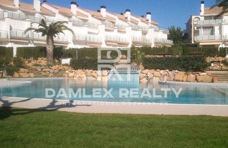 Cozy townhouse on the Costa Brava in the elite resort town of Sagaro. The townhouse is located in a haptic residential complex with a swimming pool and a beautiful green territory. The area of the object is 140 m2 + 135 m2 of land. The house has 3 bedrooms, 2 bathrooms, living room with fireplace, built-in kitchen, parking place, air conditioning, alarm, furniture. In 2012, repairs were carried out. The beach is 500 meters away.