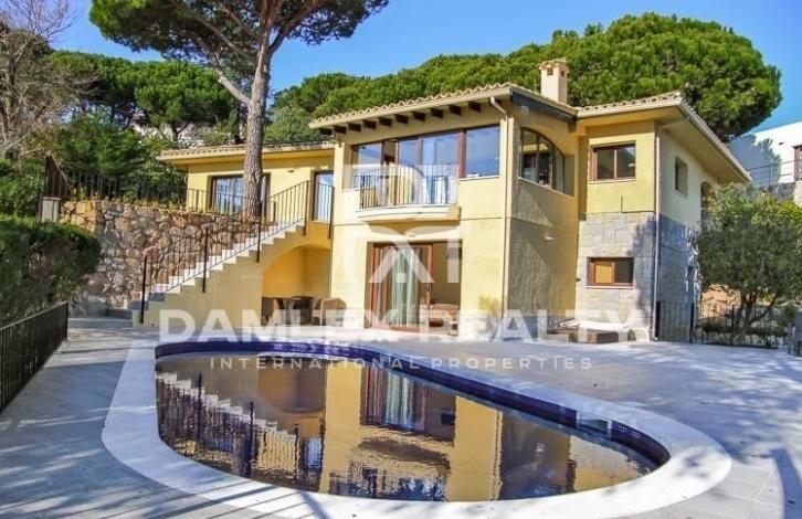 House of 260 m2 on a plot of 1000 m2, located in a quiet urbanization in 3 minutes walk to the beach. The house has 3 bedrooms, study, lounge-dining room with fireplace, fully equipped kitchen, heated floors in the living room and bathrooms, parquet, terraces, garage for 2 cars, modern video surveillance system. The house is after reconstruction, the kitchen of Santos is fully furnished, high quality materials were used for decoration. Garden, swimming pool with lighting, autoplay, own well. General characteristics: VILLA / HOUSE, sea view, living room, fireplace, equipped kitchen, terrace, heated floors, garage, garden with watering, swimming pool, building materials from the best European manufacturers, for sale Furnished.