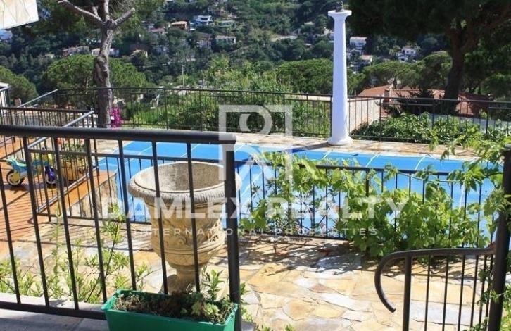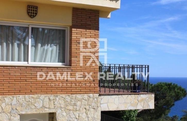 The sea-facing villa is located in the urbanization of Lloret de Mar, just an 8-minute drive from the stunningly beautiful Cala Caneis beach, set in a natural picturesque bay that is equipped for a beach holiday. On the sandy beach there is a playground, a restaurant with a high-quality cuisine, which is highly appreciated among the inhabitants of Lloret. The villa has two floors. The area of the villa is 180 m2. There is a garden of 900 m2 with a swimming pool. On the main floor of the villa there is a lounge-dining room, kitchen, 3 bedrooms and 2 bathrooms. There is also a terrace. On the ground floor there are 2 bedrooms and 2 bathrooms. There are also guest apartments with a small kitchen and a bathroom. There is access to the terrace.