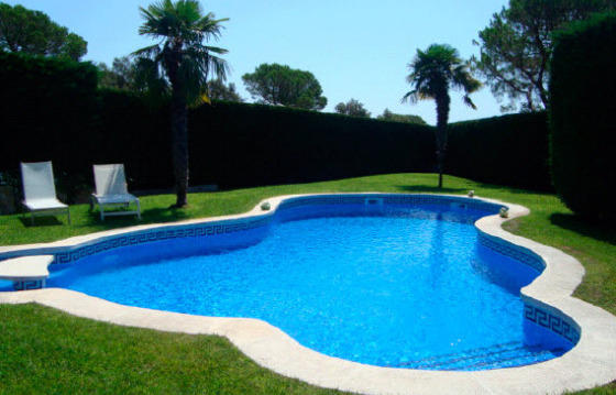 The spacious garden has a private pool, a gazebo and a field for playing football with the children.