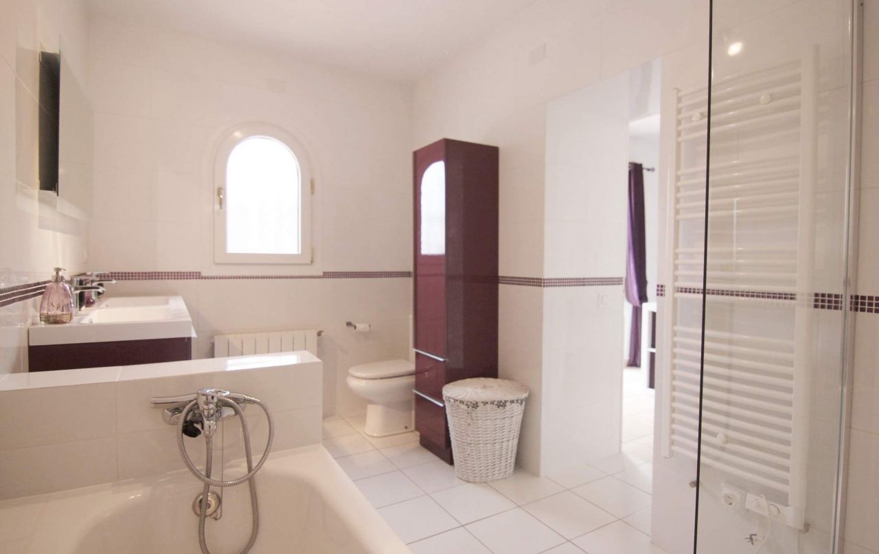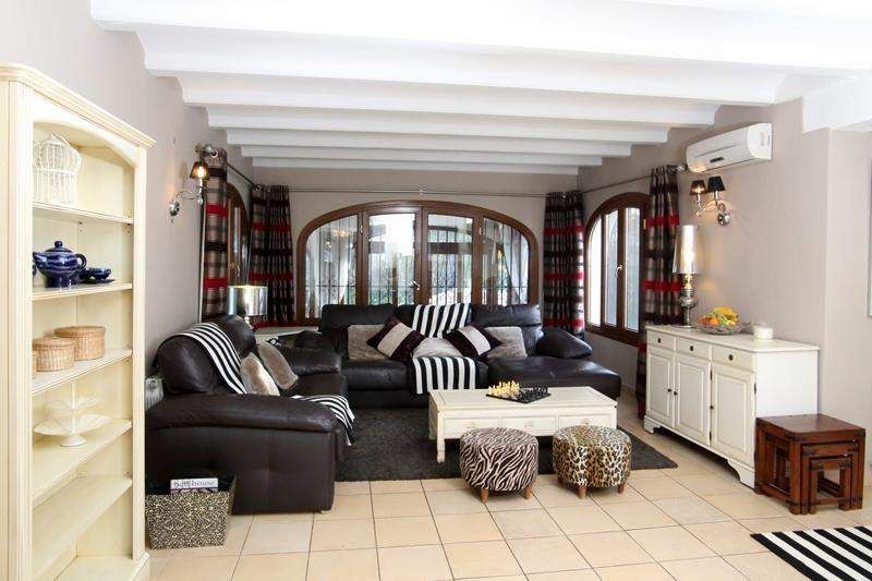 Villa for sale near Javea beach. Located in a quiet residential area called Adsubia, this villa has been mostly refurbished and comprises: entrance hall, modern fitted kitchen with exterior door leading to an open patio with pergola covered dining area & stair to the pool area. A large lounge-diner has a log burner and access into a glazed sun room which overlooks the pool and surroundings. In total there are 4 double bedrooms and 3 bathrooms (3 bedrooms, 2 bathrooms upstairs and 1 bedroom ensuite downstairs). Lots of extras included in the sale of this villa are: gas central heating, aircon, utility room/gym, low maintenance landscaped garden with irrigation and private 9x4. 5m pool with surrounding terrace, summer kitchen & bbq, exterior lighting, paved driveway with parking x 2 cars and electric gate entrance. It's a fabulous villa for sale, close to the Arenal beach in Javea, all services and schools. It's an ideal villa for all year living or for holidays and rentals. You must come and see it soon.