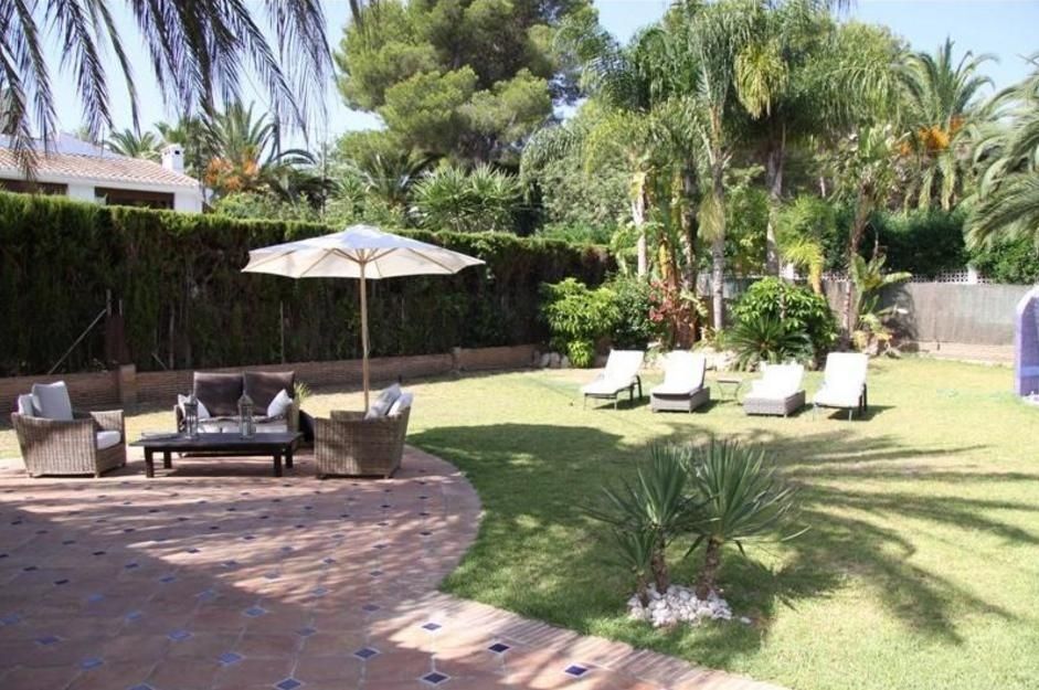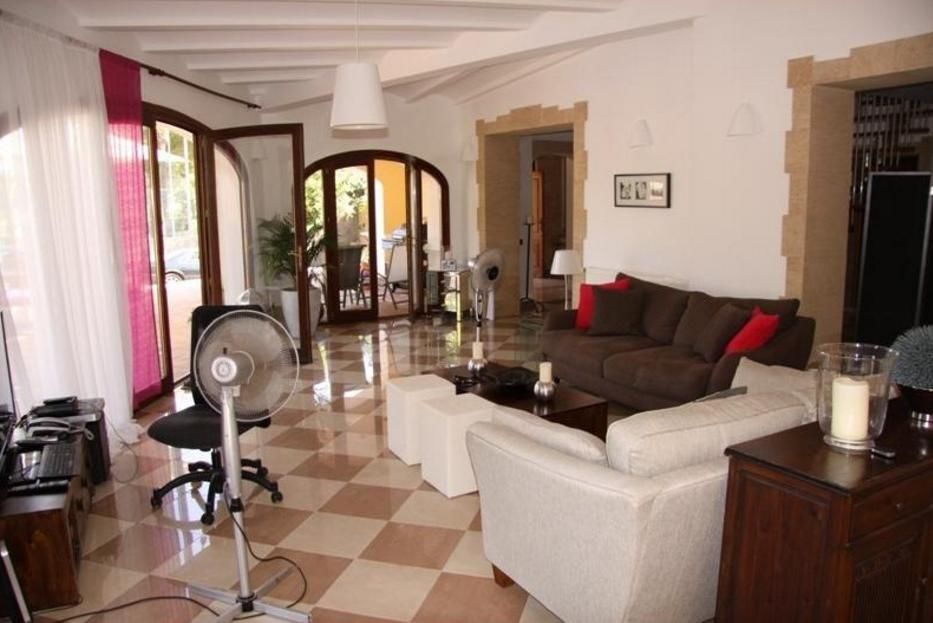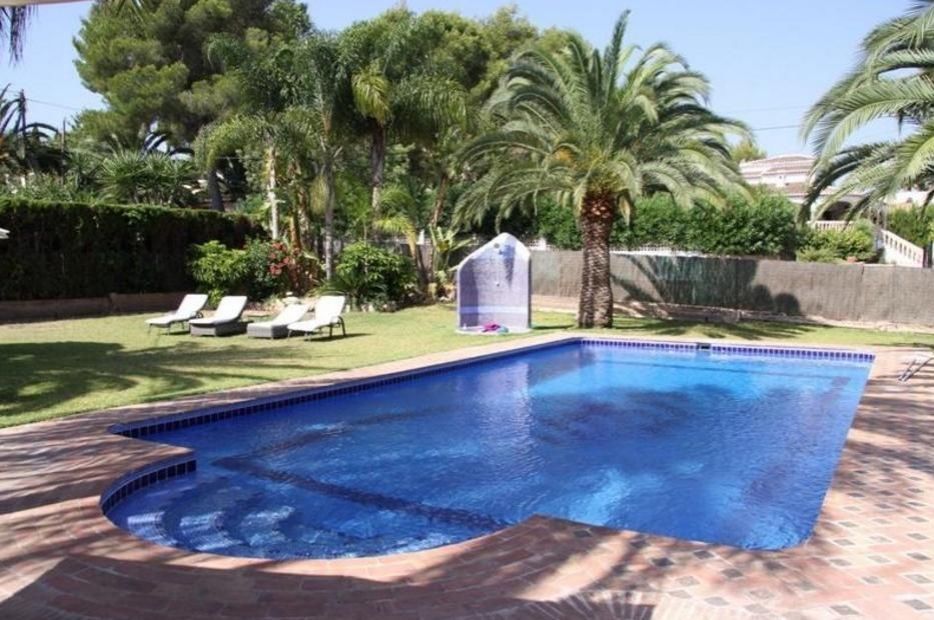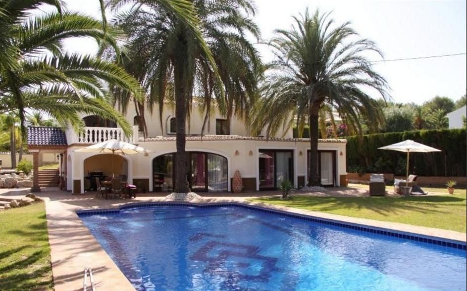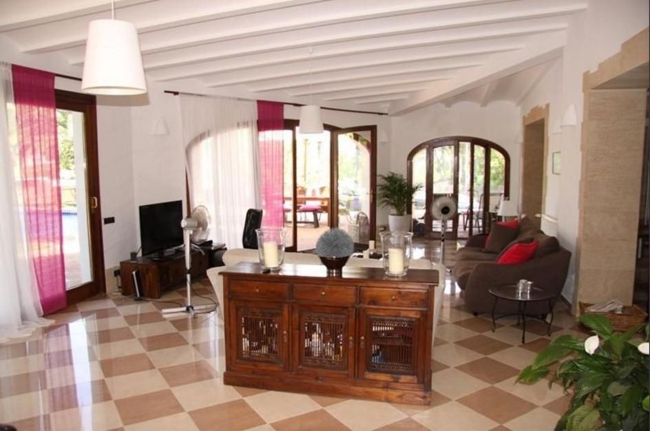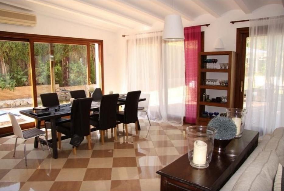 Красивая и элегантная вилла на 2 уровнях в Адсубиа, Хавеа. Гостиная с камином, отдельная столовая, полностью оборудованная кухня, крытая терраса и открытая террасы, двойное остекление, частный бассейн 12 х 6 м и средиземноморский сад.