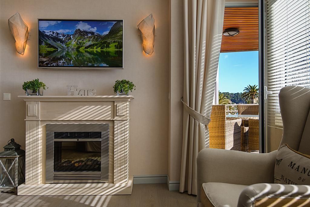 Stylish apartment in first sea line in Lloret de Mar on the Costa Brava. Distance to Barcelona city centre 70 km away. The total area of 70 m2. The apartment has 2 bedrooms, 1 bathroom, lounge, kitchen and a terrace which offers beautiful views of the promenade and the sea. The apartment has gas heating and air conditioning. The building has an Elevator.