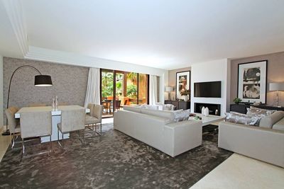 Within a privileged location Lomas del Rey is located within the exclusive Marbella Golden Mile, in front of Puente Romano and 800 metres from the beach, simply 3 minutes from the famous port of Puerto Banús and 5 minutes from Marbella town centre. Direct access/exit to the main motorway (exit 181B Nagüeles) exists and is only 10 minutes from eight popular golf courses. Complete with "First Occupational Licence".