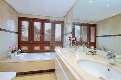 Finishing touches of the highest quality: two, three and four bedroomed apartments or duplex properties including either three, four or five bathrooms beautifully tiled in Mediterranean style marble fittings, fitted hydro-massage bath tubs, spacious as well as spectacular views from the balconies and terraces, some measuring over 200 m2. All apartments contain a completely fitted SIEMENS kitchen and come with underfloor heating throughout the apartment, DAIKIN hot/cold air conditioning, all exterior double glazed carpentry woodwork manufactured from treated Iroko wood. Attic units contain a private fitted jacuzzy within the balcony, a private roof garden, two space car park garage and storage room. Completely finished and ready to move into.