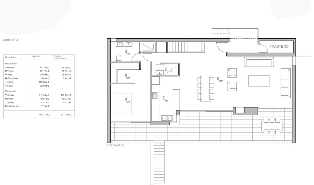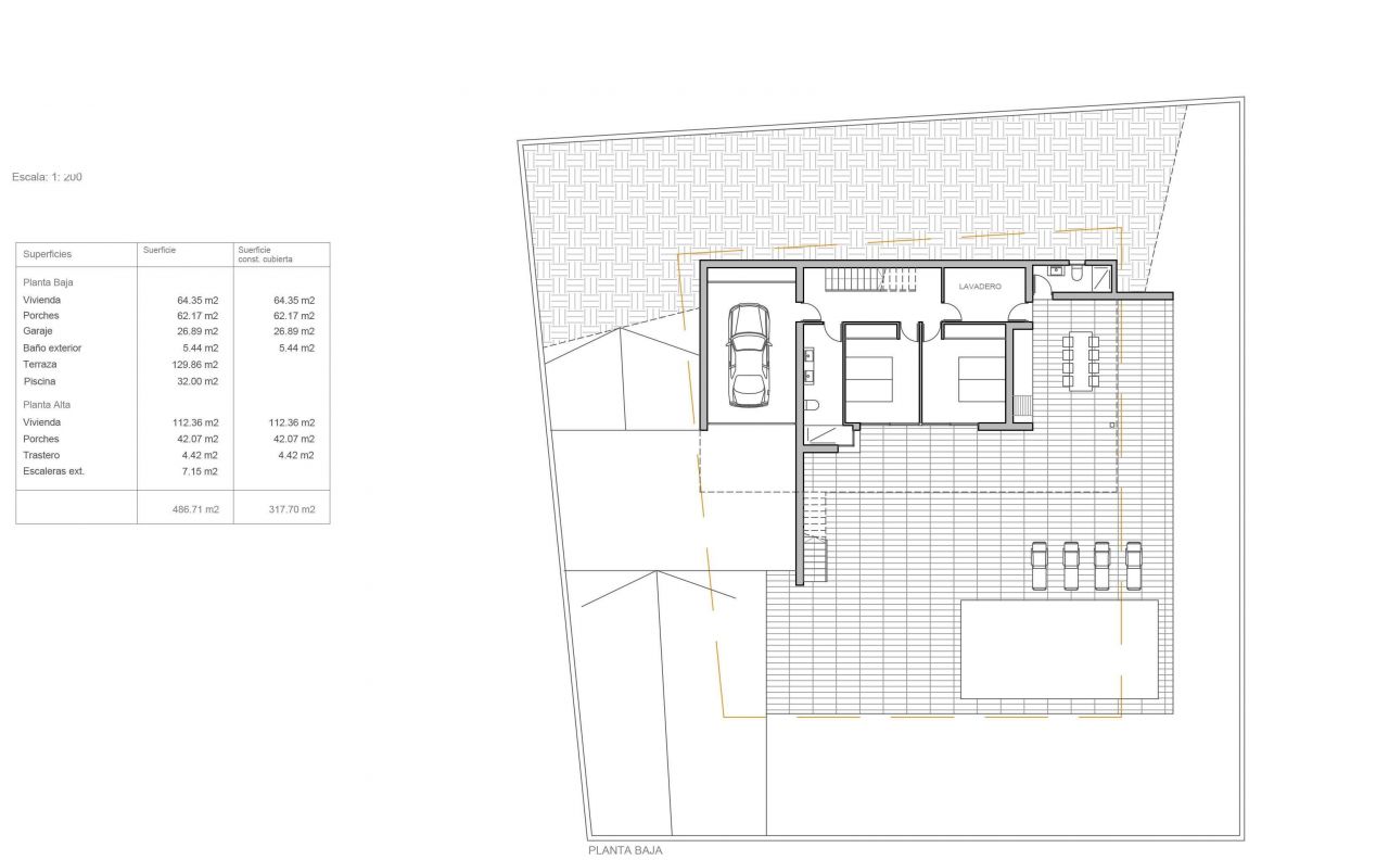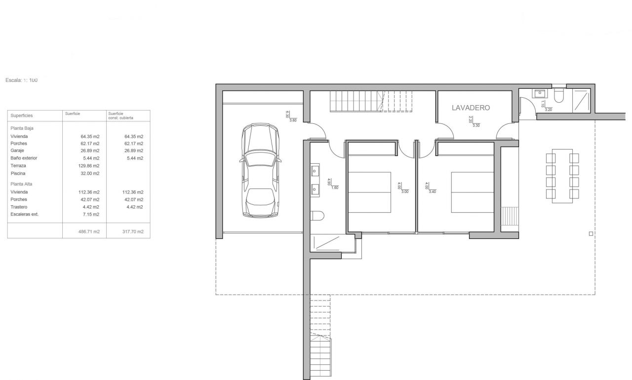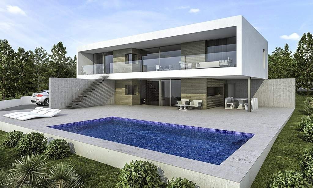 Luxury new build villa for sale in Moraira. This modern villa is situated in a quiet residential area, 1,6 Km from the sea (Cala L'Andragó), and 2,5 Km from Moraira. It enjoys good sea views. It is located on a plot of 800 m2 and has a floor area of 317 m2 distributed in 2 floors as follows: on the main floor has 1 large bedroom (with en-suite + dressing room), 1 guest toilet, storage, kitchen, large dining living room (with fireplace), which access to a porch of 40 m2. On the ground floor there is a bathroom, a spacious laundry room, 2 bedrooms with fitted wardrobes and a porch of 60 m2 where we also have a nice covered summer kitchen (barbecue). Enjoy an open terrace of over 100 m2 and a pool 10x4 meters. This modern villa features large windows, a beautiful design and superb quality finishes (porcelain floors, exclusive tiles, kitchen design, so on). It is equipped with underfloor heating system Altherma by Daikin (maximum efficiency), air conditioning and electric shutters. It also has a large parking area for several vehicles and a garage with direct access to the house.