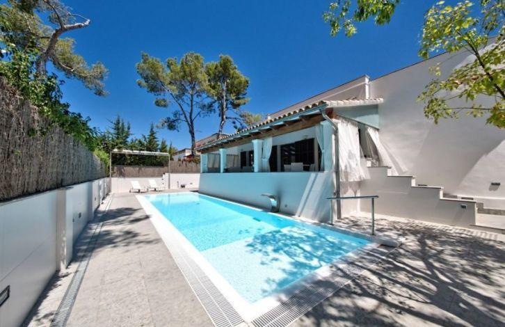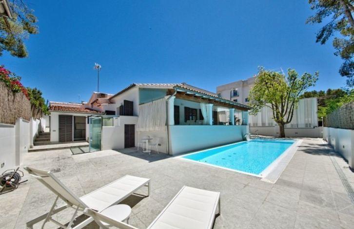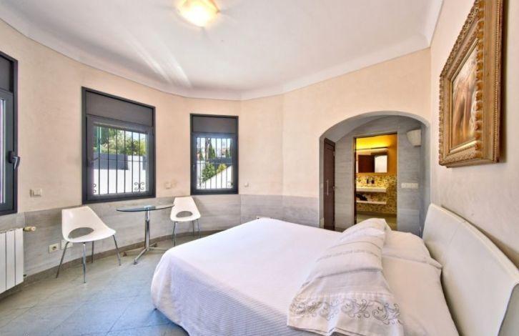 This lovely and exceptional villa, located on a corner plot in the residential area of La Bonanova in Palma de Mallorca, is close to the Porto Pi shopping center and the Bellver Castle, one of the most famous medieval architectural monuments of the Balearic Islands. This beautiful villa with a traditional facade and exquisite interior design has 3 bedrooms. The spacious hall leads to the kitchen with dining area, to the master bedroom with its own bathroom and to the other two bedrooms, one of which also has its own bathroom. At the very top, in the tower of the house, is an office that can be converted into an additional bedroom. A beautiful garden with a pool with a countercurrent, a spa and an automatic canopy, invite you to enjoy the beautiful climate of Mallorca. In addition, there is an open summer kitchen with a barbecue. On one side of the garden there is a bathroom with a shower and a wine cellar. In the equipped laundry you can get from the garden and from the kitchen. Among other characteristics, one can distinguish a terrace with a canopy, a spa and a tower. Location and attractions: La Bonanova is a quiet and very sought after residential area, located near the center of Palma de Mallorca. It is well known for its proximity to the shopping center of Porto Pi and Belver Forest, as well as the fact that there are several very prestigious international educational institutions here. Characteristics: Air Conditioning, Fitted Wardrobes, Barbecue, Wine Cellar, Central Heating, Fireplace, Laundry room, Double Glazing, Jacuzzi, Porch, Entrance door, Reinforced door, Renovated object, Living room with dining area, Solarium, Television, Storeroom, Dressing room OBJECT NUMBER ON HOUSAGE: 240904