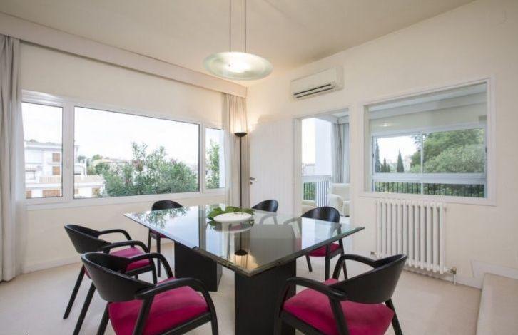 This modern villa is located in the sought-after residential area of Son Armadans in Palma de Mallorca, the capital of the Balearic Islands, close to the golf courses, schools and a short drive from the marinas and yacht clubs. The three-storey modern villa has a total of 6 bedrooms, 3 bathrooms and 2 bathrooms. On one of the floors of the house there are living and dining areas, one bedroom, a guest bathroom, a separate kitchen with a pantry and a laundry, which has its own entrance for the staff. On the top floor of the house are 3 bedrooms, 2 bathrooms, including a master bedroom with its own bathroom, as well as another bedroom that has been converted into a dressing room, and two spacious and sunny terraces. The lowest floor is not connected to the rest of the house and has its own entrance. There is an office, several rooms and a living area for staff with a bedroom, a small living room and a bathroom. There is an opportunity to purchase a neighboring plot for the construction of another house or a swimming pool. Among other characteristics can be identified garage, utility room and technical room. Location and attractions: Palma de Mallorca, since the middle of the last century, has turned into a city that has managed to intelligently preserve its rich cultural and architectural heritage. With all this, we can not fail to mention the wide range of services and excellent services provided to tourists and local residents. The city is well known for its numerous art galleries and museums, as well as many fine shops and elegant designer boutiques. Characteristics: Air Conditioning, Guest Apartment, Fitted Wardrobes, Gas Central Heating, Fireplace, Utility Room, Pantry, Double-glazed Windows, Intercom, Renovated, Storeroom, Dressing Room OBJECT NUMBER ON HOUSAGE: 240857