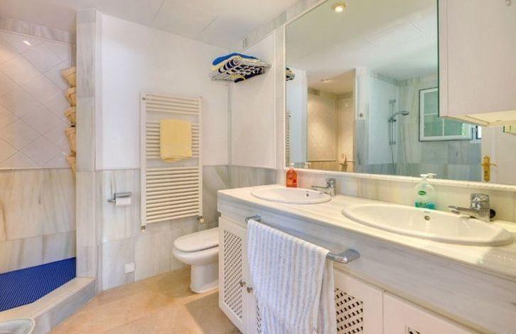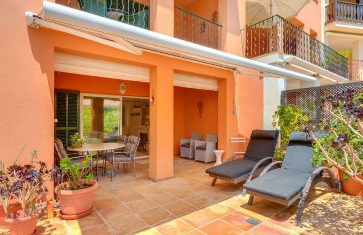 This excellent ground floor apartment with garden, located next to the famous Bendinat golf course, is located in one of the most prestigious residential complexes in southwest Majorca. The magnificent sandy beaches of Ijetas are within walking distance, and the exclusive marina of Puerto Portals and the center of Palma can be reached by car in a few minutes. Elegant corner apartment, located in a residential complex with beautiful gardens and three swimming pools, has 2 bedrooms, 2 bathrooms, including a master bedroom with its own bathroom. The main bedroom, as well as a bright spacious living-dining room with a fireplace, overlook an extensive sun terrace and a private garden of about 40 m2, which makes it possible to enjoy privacy, uncharacteristic for apartments. The private garden overlooks the gardens of the residential complex. There is also a large separate kitchen. Among other characteristics it is possible to distinguish the air conditioner with the cooling and heating system in the whole apartment, double glazed windows, built-in wardrobes, satellite TV, utility room and parking space. Location and attractions: Belonging to the municipality of Kalvia, Bendinat is an elite residential area that is ideal for permanent or seasonal living. Due to its excellent location, just a few minutes from the city of Palma, it enjoys immense popularity among visitors and locals. Within a radius of 500 meters from Bendinat there is the charming Iyetas Beach, the prestigious Encorege Club, Portals Nous, suitable for daily shopping, the famous marina of Puerto Portals and several international schools. The area has its own golf course. Characteristics: Air Conditioning Hot / Cold, Fitted Wardrobes, Fireplace, Double Glazing, Door Phone, Reinforced Door, Living room / Dining Room, Storeroom, Satellite TV OBJECT NUMBER ON HOUSAGE: 240826