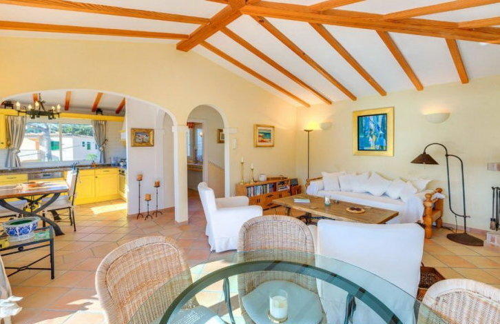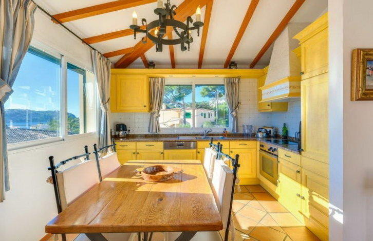 This charming villa, offering beautiful panoramic views of the bay of Puerto de Andratx, is located in south-west Majorca in a small residential complex of 5 Mediterranean-style villas, just 300 meters from the exclusive Club de Vela. The center of Puerto de Andratx with its elegant shops, designer boutiques, excellent restaurants and bars is within walking distance. The south-facing villa has 3 bedrooms with en-suite bathrooms, including a guest bedroom with its own entrance. Spacious living-dining room with American kitchen, fireplace and exposed wooden beams give the house a special cosiness. Large panoramic windows let in the house a lot of light and overlook the terrace, from which there are magnificent views of the sea. Among other characteristics can be divided into double-glazed windows, built-in wardrobes, laundry and garage. The residential complex has a swimming pool, sauna and service. All this, as well as its location and fantastic views, make this property a treasure of Puerto de Andratx. Location and attractionsPuerto de Andratx is a natural harbor located in the west of Mallorca, which has been used by sailors since ancient times. From the fishing village of Puerto de Andratx has turned into an important tourist center. Its main attractions are the mountain landscapes of the Sierra de Tramuntana and the nearby small coves, which attracts numerous tourists to spend their holidays in local hotels, summer houses or villas. This, in turn, involves a wide selection of real estate for "residential" exclusive tourism. It should be noted that many residents of Puerto de Andratx are foreigners who came from other European countries. Puerto de Andratx is located about 30 minutes from the capital of Palma. Characteristics: Guest Apartment, Fitted Wardrobes, Fireplace, Laundry room, Double Glazing, Sitting room / dining room, Sauna, Alarm, Dressing room, Sea view OBJECT NUMBER ON HOUSAGE: 219842