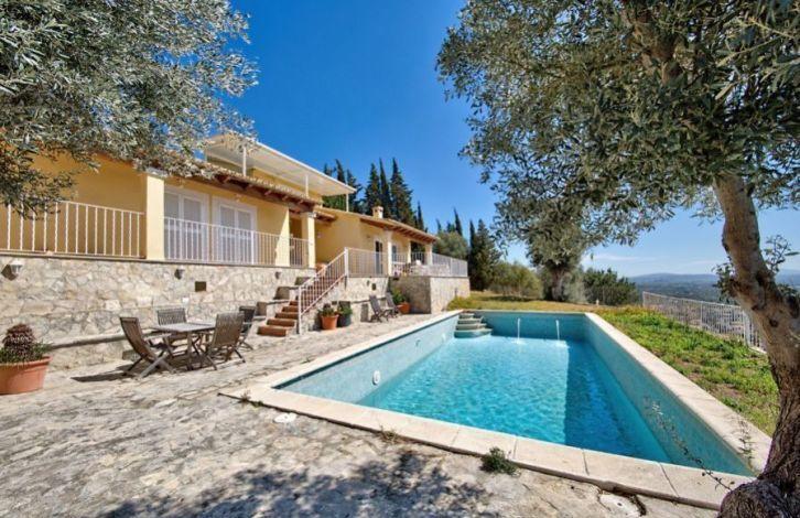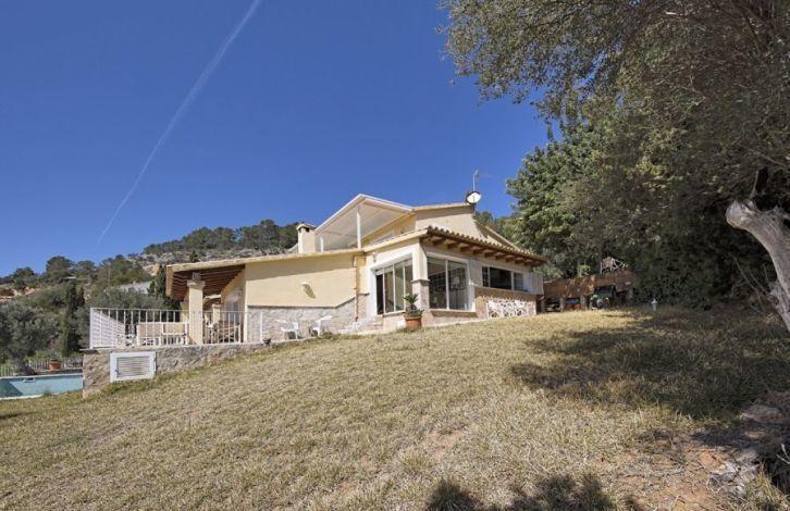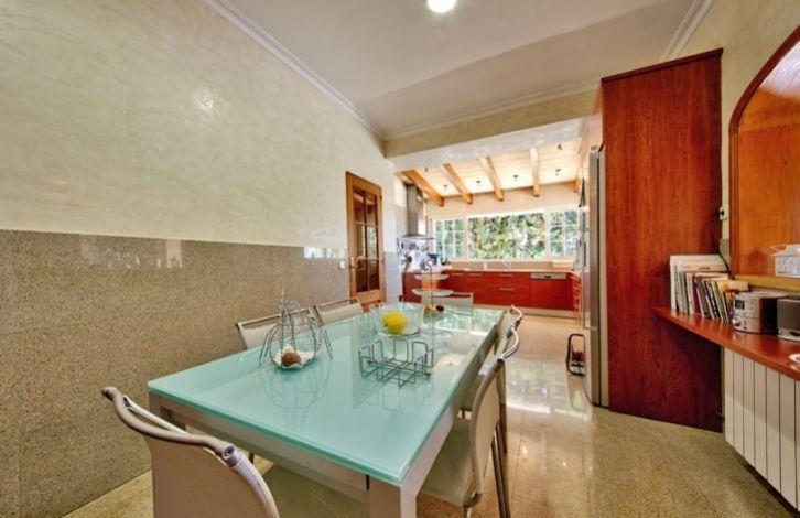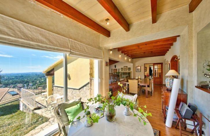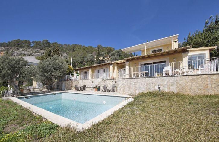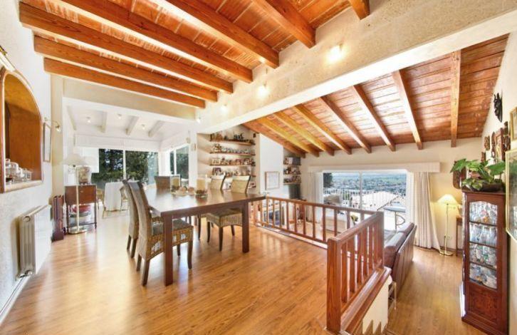 Located in the residential area of Sa Font Seka in the municipality of Bunyola, this Mediterranean villa in Mallorca has a panoramic view of the Tramuntana Mountains and the sea in the distance. The capital of the island of Palma and the city of Sawyer, located in the north, can be reached quickly by car. The south-facing villa offers 5 bedrooms and 4 bathrooms, two of them are in the bedrooms. Wooden visible beams and parquet floors in a two-level living-dining room create a warm and cozy atmosphere. The property also has a spacious and modern kitchen with a dining area. In addition, the house has large open and covered terraces and a garden with a vast area with a swimming pool. Other characteristics of the villa include air conditioning with heat pump, central heating, fireplace, double glazed windows, built-in wardrobes, basketball court and the possibility of parking. Area and attractions The municipality of Bunyola, located in the north-west of Mallorca, is characterized by being divided into two parts, to the flat part in the south and the Serra de Tramuntana mountain in the north, a UNESCO World Heritage Site. You can get to it either along the motorway or on the wonderful train, which is more than a hundred years old and which connects Palma and Sawyer. The gardens of Alfabia, of Arab origin, are considered one of the most beautiful places on the island and are only a few minutes away by car. Air Conditioning, Fitted Wardrobes, Balcony, Barbecue, Wine Cellar, Central Heating, Fireplace, Utility Room, Storeroom, Double Glazing, Parquet, Intercom, Renovated, Living / Dining Room, Alarm System, Storeroom, Dressing Room, Sea View OBJECT NUMBER ON HOUSAGE: 201507