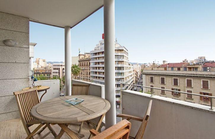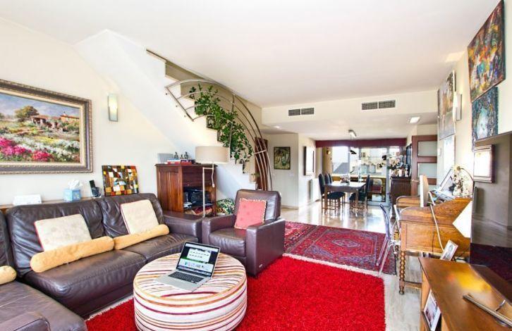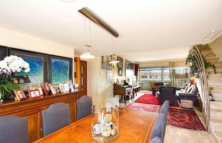 This magnificent duplex apartment in Mallorca has an ideal location in the immediate vicinity of the Plaza de Espaa, in the heart of the city of Palma. Bus stops, the metro and the railway station, as well as the cinema, bars, restaurants and shops of the streets of San Miguel, Olmos and the market of Mercado del Olivar are only a few steps away. The spacious two-storey penthouse consists of 4 bedrooms and 3 bathrooms, one of them is a bathroom suite. On the first floor there is a living-dining room with two large balconies located on opposite sides of the apartment, and an equipped kitchen with furniture and laundry. The staircase gives access to a huge, approximately 117 m2 solarium for private use on the roof, from which a panoramic view opens up. In addition, there is also a cozy living room upstairs. The apartment in Palma was built using high quality materials and offers a modern design, and in the building in which it is located, there are gardens and a common swimming pool with neighbors, which is a rarity in the city center. Zone and sights Palma de Mallorca, since the middle of the last century, has turned into a city that managed to intelligently preserve its rich cultural and architectural heritage. With all this, we can not fail to mention the wide range of services and excellent services provided to tourists and local residents. The city is well known for its numerous art galleries and museums, as well as many fine shops and elegant fashionable boutiques. Air Conditioning, Fitted Wardrobes, Lift, Balcony, Central Heating, Laundry room, Double Glazing, Marble, Door Phone, Reinforced door, Renovated object, Living room with dining area, Solarium OBJECT NUMBER ON HOUSAGE: 201290