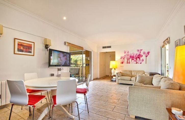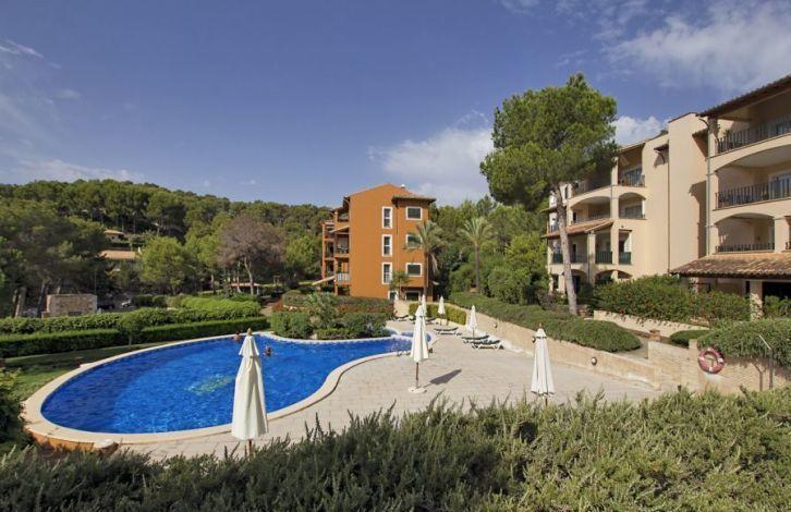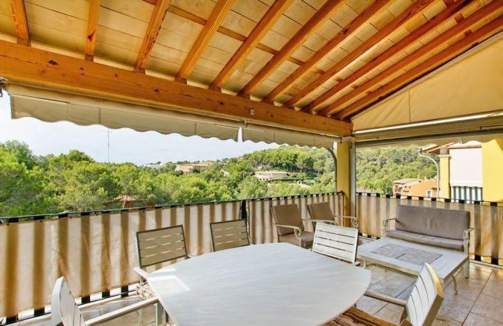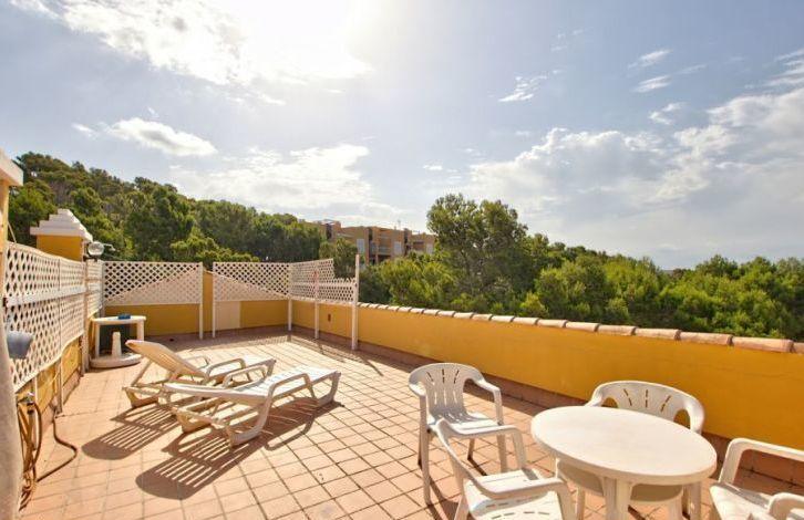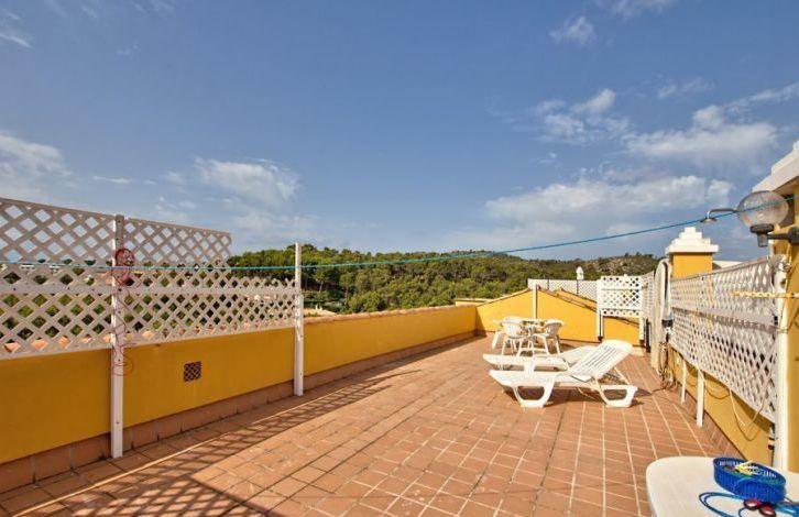 Located in a quiet residential complex, a short walk from the picturesque Cala Fornace Bay, this beautiful penthouse is located in the exclusive Paguera area in southwest Majorca. A large sandy beach and Paguera Boulevard with its restaurants and shops can also be easily reached on foot. Bright apartment in Mallorca has 2 bedrooms and 2 bathrooms. It offers a spacious living-dining room that opens onto two covered terraces and a fitted kitchen. In addition, the apartment has approximately 50 m2 individual solarium on the roof, which offers panoramic views, including a small part of the sea. Other property features include air conditioning with heat pump, central heating, double glazed windows, built-in wardrobes and one parking space. The residential complex also offers a large area with 2 shared swimming pools. This is a rare opportunity to acquire such a wonderful penthouse like this in Cala Fornace. Area and attractions The well-preserved typical area of Cala Fornace is in the south-west of Mallorca. It is one of the most popular areas of the island. In addition, in the immediate vicinity is located Pagera Boulevard with numerous restaurants, shops and nightclubs. Paguera belongs to the municipality of Calvia with a highly developed tourist infrastructure. The whole area benefits from being close to not only the prestigious yacht clubs of Port Adriano and Portals Nous, but also from the golf courses, which makes it a very attractive place for those who love these sports disciplines. 2 communal pools, Air Conditioning Hot / Cold, Fitted Wardrobes, Lift, Balcony, Central Heating, Storeroom, Double Glazing, Sitting Area / Dining Area, Solarium, Satellite TV OBJECT NUMBER ON HOUSAGE: 201260