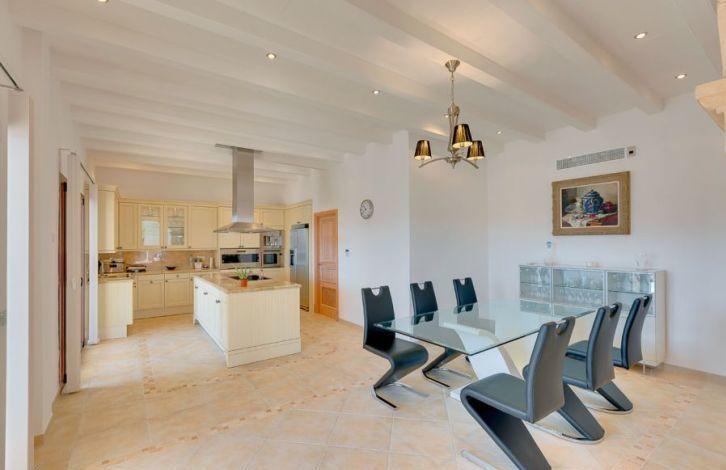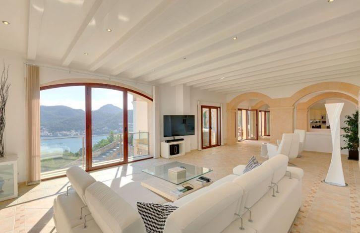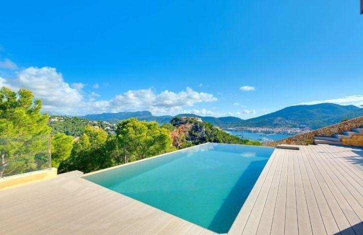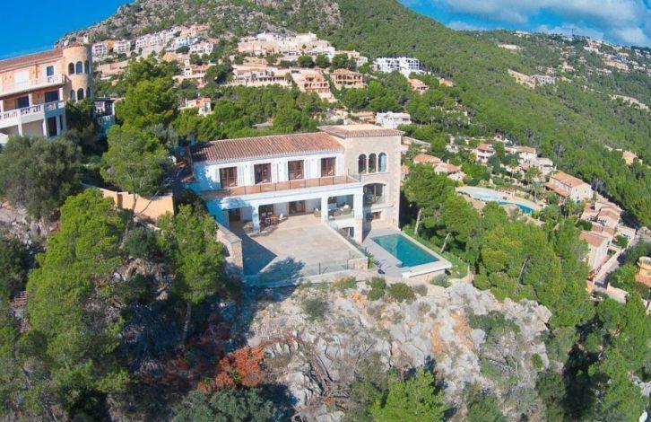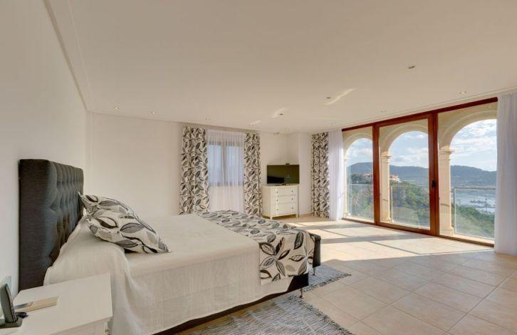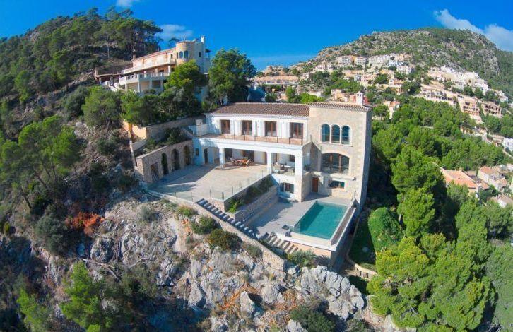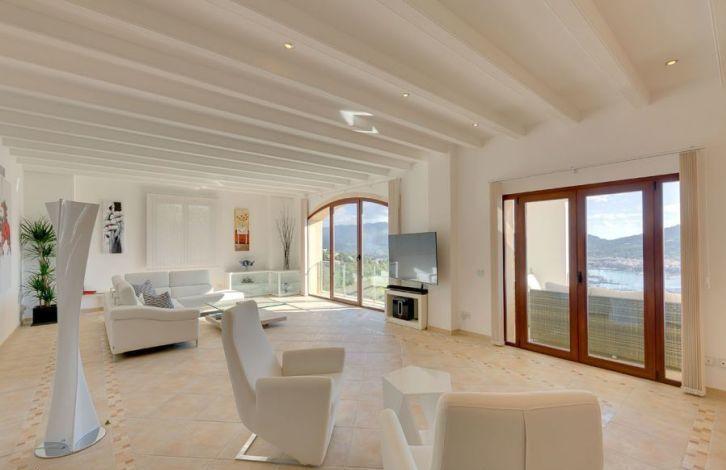 Located above the Bay of Puerto de Andratx, with a fantastic view, this very spacious luxury villa in Mallorca is in the Cala Moragues area, just minutes from the exclusive marina, as well as elegant shops, fashionable boutiques, restaurants and bars on the waterfront. The superb villa was built and equipped with the best materials and offers 5 bedrooms with bathrooms in each, including a separate guest apartment. A spacious and very open living-dining room with a fireplace and a modern kitchen opens into a large area with terraces and a swimming pool at a lower level. Most of the rooms offer a picturesque view of the harbor. Other characteristics of the residence are air conditioning, gas oil-fired central heating, heated floors, double glazed windows, domotics system, alarm system and ample parking space. Area and attractions Puerto de Andratx is a natural harbor located in the west of Mallorca, where marine travelers have stayed since ancient times. It has evolved from a fishing village into an important tourist center. The main attraction of Puerto de Andratx is the mountain landscape of the Sierra de Tramontana and the nearby coves, attracting numerous tourists who prefer to spend their vacations here, stopping in one of its hotels, villas or summer houses. Puerto de Andratx offers a wide selection of properties for exclusive "residential" tourism, aimed at acquiring local property as a summer or permanent residence. It should be noted that many residents of Puerto de Andratx are foreigners who came mainly from other European countries. It is located about 30 minutes from the capital, Palma. Air Conditioning, Guest Apartment, Fitted Wardrobes, Central Heating, Fireplace, Laundry room, Storeroom, Double Glazing, Co-Op, Alarm System, Underfloor Heating, Storeroom, Dressing Room, Sea View OBJECT NUMBER ON HOUSAGE: 201571