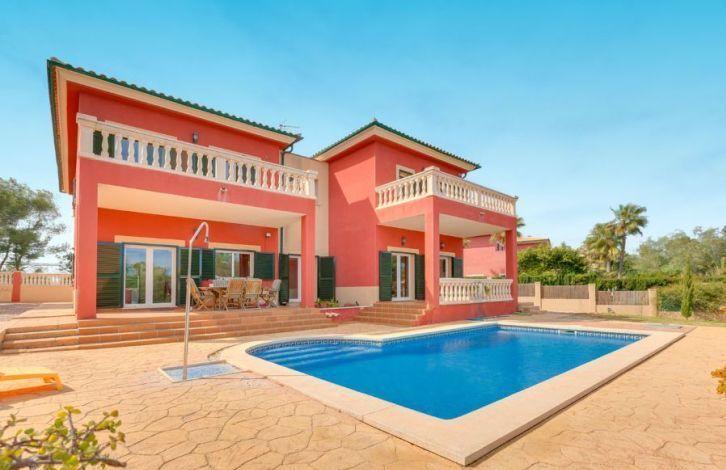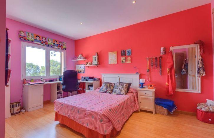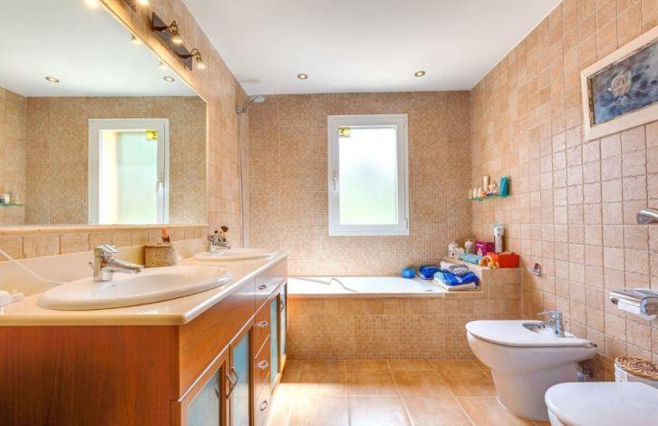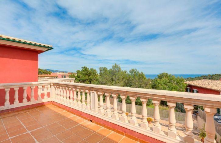 Situated a short distance from two beautiful beaches, this spacious villa in Mallorca is located in a quiet location in the sought-after residential area of Cala Vignes. The golf course is only a few minutes away, and the exclusive marina Port Adriano can be reached quickly by car. Very well maintained and colorful villa is located on a flat plot of land and has two floors. It offers 5 bedrooms and 3 bathrooms, two of them with their own bathroom, including the main bedroom suite with dressing room and hydromassage bath. The house has a spacious living-dining room with a fireplace and a large kitchen with a dining area. From the balconies on the top floor there is a view of the sea, and in the garden there is a swimming pool. Other property features include air conditioning with heat pump, double glazed windows, fitted wardrobes, laundry room, utility room and a double garage. This luxury house in Mallorca is ideal for a vacation or permanent residence throughout the year. The area and sights of Cala Vias, belonging to the municipality of Calvia, is the area of Mallorca, which has grown significantly and developed in many directions in recent years. Located next to the golf courses and the prestigious marinas of Puerto Portals and Port Adriano, it has been chosen as a holiday destination and accommodation for many visitors. Air Conditioning Hot / Cold, Fitted Wardrobes, Fireplace, Utility Room, Storeroom, Double Glazing, Reinforced Door, Alarm System, Tiled Floor, Parquet Floor, Storeroom, Dressing Room, Sea View OBJECT NUMBER ON HOUSAGE: 201453