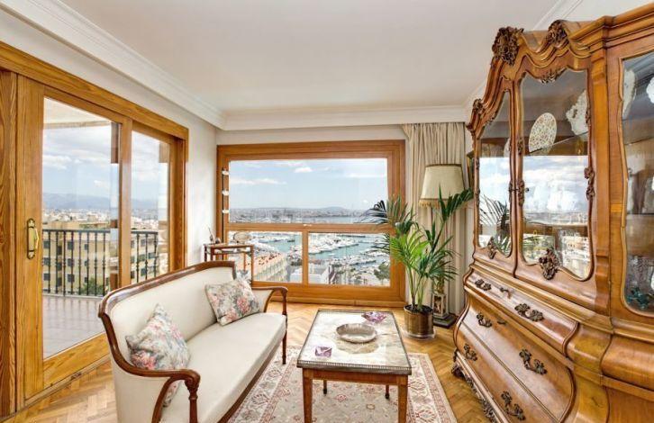 This apartment with panoramic views of the harbor, the bay of Palma and the open sea is conveniently located on a hill in the popular residential area of Bonanova in the western part of Palma. The shopping center of Porto Pi and the Casino de Mallorca are within walking distance, and the city center can be reached very quickly by car. A beautiful apartment in Palma offers 3 bedrooms and 2 bathrooms, one of them is a deluxe bathroom. A spacious living-dining room with large windows opens onto a covered terrace with sea views. In addition, the apartment has a separate, fully equipped kitchen, pantry and laundry. Other features of this apartment in Mallorca are air conditioning, parquet floors and 2 parking spaces in the garage. There is also a common garden with the neighbors and a huge swimming pool. Zone and sights Palma de Mallorca, since the middle of the last century, has turned into a city that managed to intelligently preserve its rich cultural and architectural heritage. With all this, we can not fail to mention the wide range of services and excellent services provided to tourists and local residents. The city is well known for its numerous art galleries and museums, as well as many fine shops and elegant fashionable boutiques. Air Conditioning, Fitted Wardrobes, Lift, Balcony, Utility Room, Storeroom, Parquet Floor, Storeroom, Dressing Room OBJECT NUMBER ON HOUSAGE: 201010