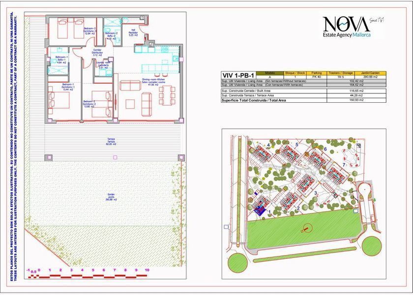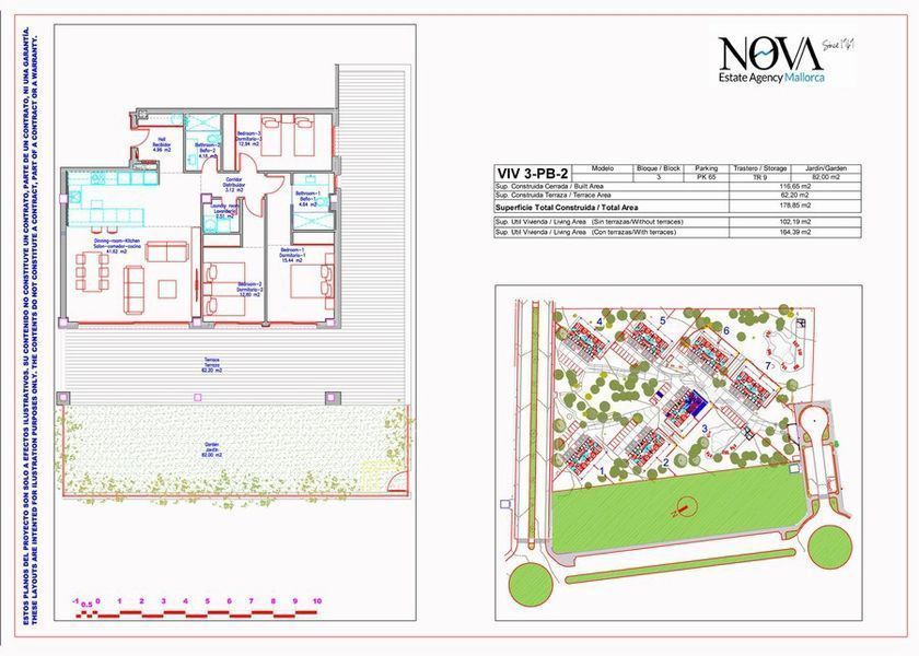 These fantastic apartments on the ground floor with garden located in a sought after area of Nova Santa Ponsa, South West Mallorca is located in a new residential complex of seven blocks of nine apartments each, next to the famous Golf courses of Santa Ponsa and 10 minutes walk from the luxury Marina of Port Adriano and the sandy beach.