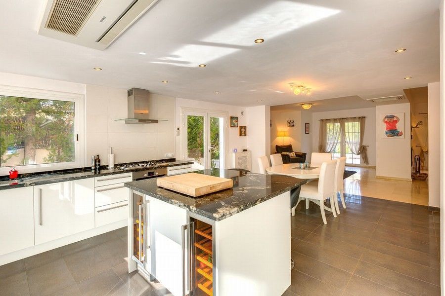 This attractive Villa was built in 1990, and in 2011 was extended and renovated at a high level. The house has 5 bedrooms and 4 bathrooms. Master bedroom has its own large bathroom, dressing area and terrace with magnificent views of the countryside. Downstairs two living rooms, study, spacious kitchen with Laundry. The Villa is surrounded by gardens and on the sun terrace there is a swimming pool and barbecue area.