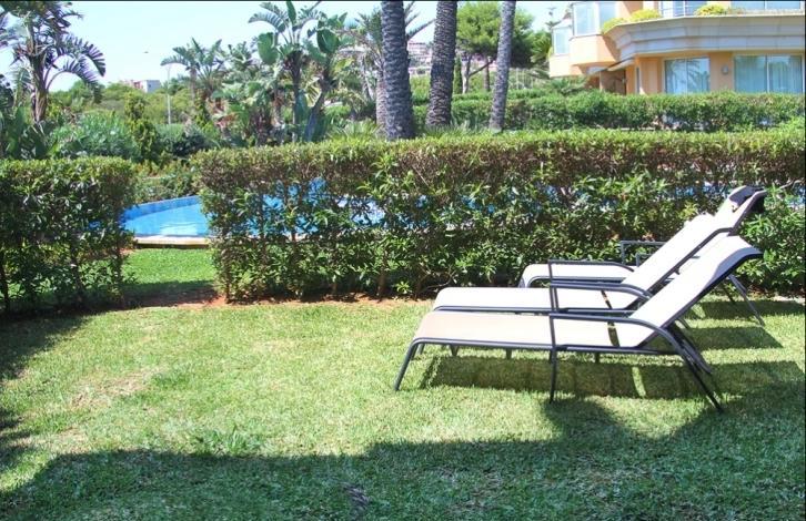 Luxury duplex apartment in Nova Santa Ponsa close to the sea with private garden. The apartment in Nova Santa Ponsa is situated in an elegant and secure complex, which was built in 2003 with high-quality materials. The exclusive complex consists of only 18 individual units and is close to the marina of Port Adriano. The apartment in Nova Santa Ponsa offers a large layout with a spacious lounge/dining room with access to the terrace and the garden, separate large kitchen, guest toilet. First floor offers 3 bedrooms, 2 bathrooms, master bedroom with dress room and en-suite bathroom with Jacuzzi, sea views. Furthermore the apartment in Nova Santa Ponsa offers antic marble floors, air conditioning (hot and cold) and underground parking space. It will be sold fully furnished.