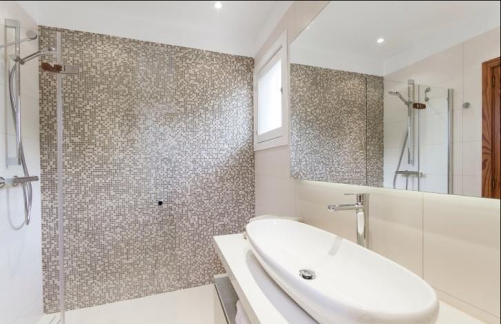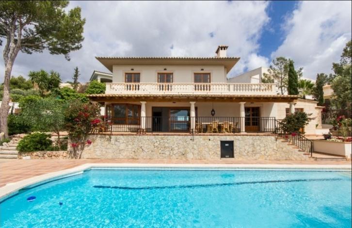 Bright spacious villa in a quiet location in Cas Catal'a, relatively small residential area close to the island's capital Palma de Mallorca. House is located on nearly flat plot of 1,400 sqm with garden, swimming pool, and various terraces with panoramic views. 2-storey villa has got approx. 260 sqm of a living area distributed in the following way: the ground floor counts with an entrance hall with columns, a living room with open fireplace and dining area with access to an ample and covered sea view terrace. Furthermore, it disposes of a kitchen, a guest toilet, a bathroom and a utility room. The upper floor features 3 bedrooms, 2 bathrooms, one of them en suite, and a wraparound terrace with lovely sea views. Villa is equipped with high quality furniture to move in and feel comfortable. More features: air conditioners, central gas heating, tiled floor, wooden windows, a utility room, and a garage. It is also possible to extend the living area of the house in 150 sqm. Villa is conveniently located in very nice and quiet neighbourhood, just in few minutes drive from several yacht clubs, golf courses, international colleges, various restaurants, and just in 5-7 minutes from Palma with its cultural heritage, shopping, and a lot of entertainments.