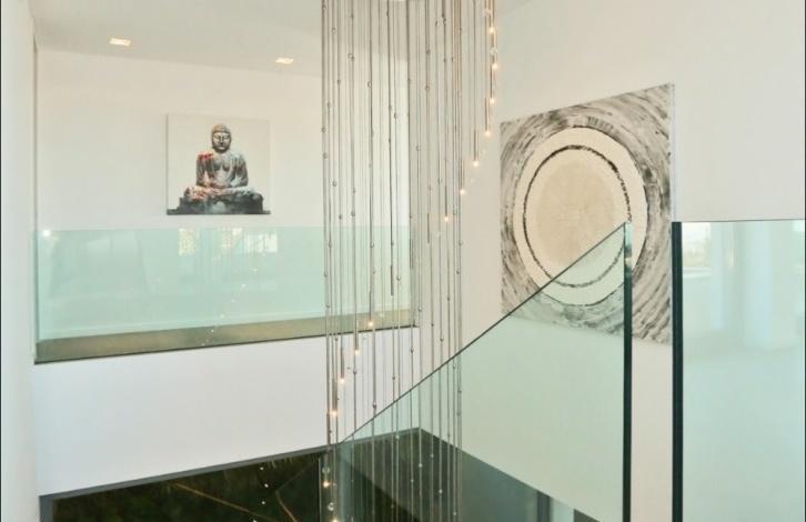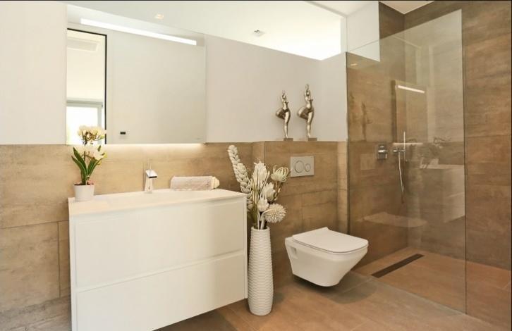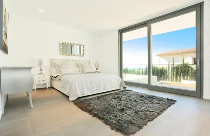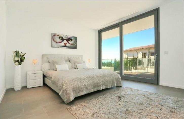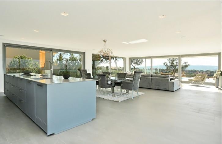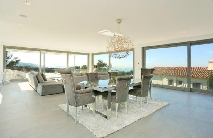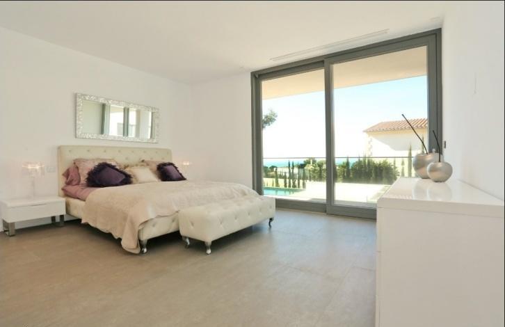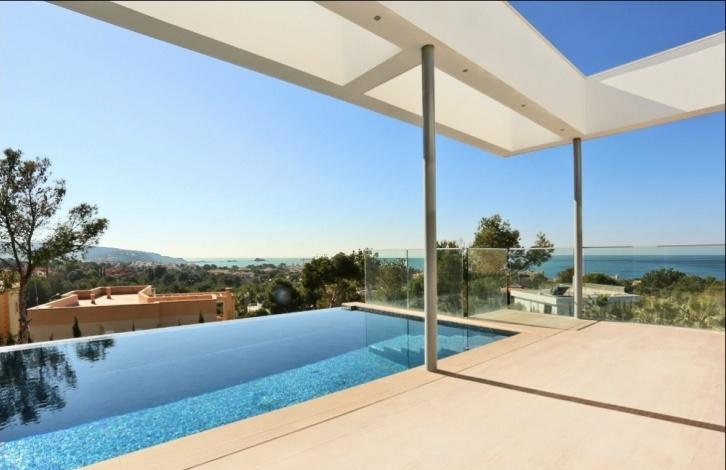 Impressive newly built villa in a prime location of Nova Santa Ponsa, the residential area made up exclusively from luxurious villas. The chalet is located on the hill, on a plot of 1,294 sqm with wonderful views of the sea and landscape from almost every part in the house. The villa has the following distribution: the ground floor of 186 sqm consists of a spacious hall, 4 bedrooms with en suite bathrooms (master also with a dressing room), 64 sqm of terraces and porches and is surrounded by a beautiful garden with a large swimming pool and solarium. The upper floor of 116 sqm offers an open space composed by a large kitchen, a spacious dining area and a comfortable lounge with access to a terrace with pergola of 53 m^2 with infinity pool, and a small garden with a pond. The roof top floor has some technical units and a large terrace of approx. 80 m^2 with summer kitchen, dining area and plenty of space for sunbathing. In the semi basement of 290 sqm floor there is a garage for 4+ cars, a 2-bedroom guest apartment, and a machine rooms. Equipment includes air conditioning (hot/cold), floor heating (heat pump), wood framed double glazed windows, automatic shutters, fitted kitchen, built-in wardrobes, security system, domotic system via IPad, SAT-TV, automatic gates, video intercom (system), and a lift. In about 3-5 minutes drive you can find all the necessary services, several sandy beaches, golf courses, restaurants, yacht clubs, and everything can be desired.