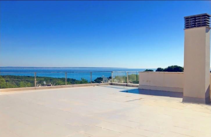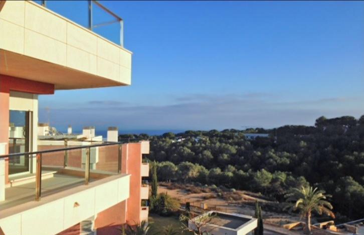 Luxury new apartment in Sol de Mallorca, small coastal town in the southwest of the island. The beautiful community offers a spacious territory with 2 swimming pools, terraces, gardens and a lot of rest areas. Apartment has 153 sqm of living area plus 29 sqm of covered terrace with sea views. The flat is very bright and spacious and offer a living-dining room, fully equipped kitchen, 3 bedrooms, 2 bathrooms and a guest toilet. Apartment is equipped with air conditioning (hot/cold), aluminium radiators in bedrooms and towel radiators in bathrooms, wooden interior doors and fitted wardrobes, marble floors, pre-installation of TV and FM, 2 community parabolic aerials for Astra and Sky, security and fire prevention alarm systems, and much more. The building has an elevator. The price includes parking place and a storage room. Community is located in very tranquil area with pinewoods in surroundings. Several sandy beaches and rocky coves, all necessary amenities and services are located in short driving distance.