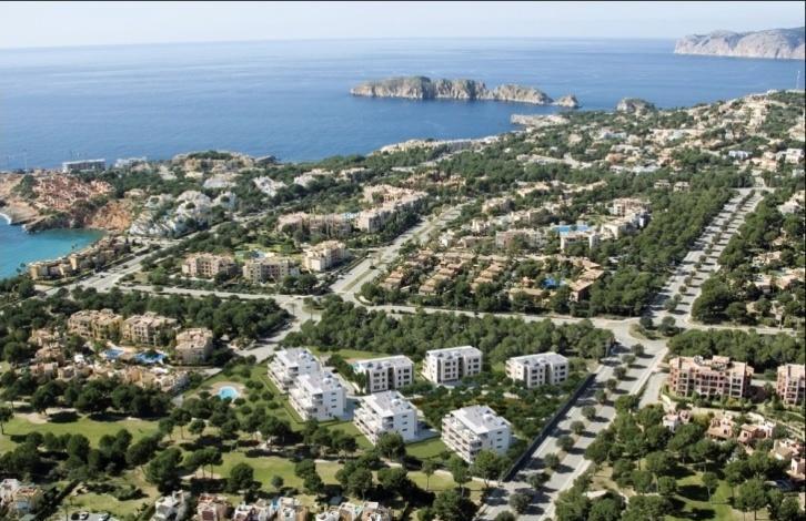 Unique opportunity: new very modern and minimalistic residential complex in walking distance from Port Adriano – one of the most luxury Mediterranean marinas, designed by Philippe Stark. The position chosen by one of the top Spanish constructor and promoting companies is left nothing to be desired: calm and good developed area offers plenty of restaurants, coffee-shops, shopping mall, sandy beach, and much more. The private gated community, completely secure and unbelievably comfortable, offers 2 communal beach effect swimming pools with sun decks such as large communal garden with lawn and perfectly selected and combined Mediterranean vegetation. The complex will get 7 buildings in total, each 4-storey with 10 apartments. The residence has 3 apartments left of 122 sqm of living area distributed between open concept living room with lounge, dinning area, and fitted kitchen, 3 bedrooms, and 3 bathrooms. Apart of this, each one has a terrace of 37 sqm. All properties will be equipped with underfloor heating and air conditioning by fan coils under false ceiling, and the penthouses will have pre-installations for a chimney and for a Jacuzzi (on the terrace). Price will include 1 covered parking space with electric vehicle charging dock and a storage room, and optional can be purchased another parking spaces. Prices from 610. 000 €