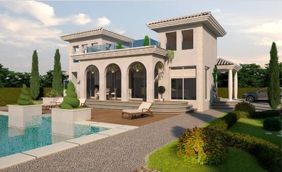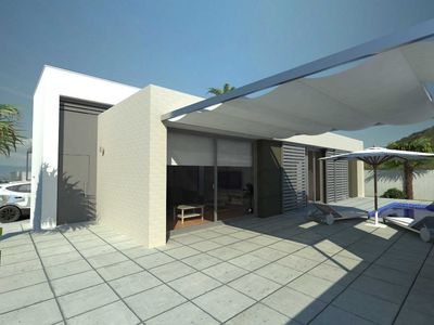 Вилла в Сьюдад-Кесада, Рохалес. Салон, отдельная кухня, 4 спальни, 2 ванные комнаты, 1 гардеробная, терраса 40 м2, солярий. Общая площадь дома 220 м2. На участке в 1245 м2 есть гараж, большой сад с частным бассейном.