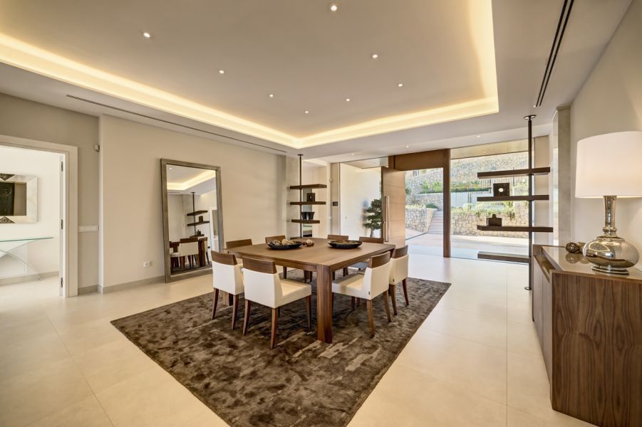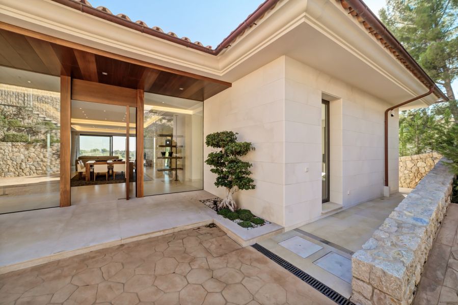 This luxurious, newly built luxury Villa offers a modern architecture, high quality equipment and great location on an elevated position in son Vida, which allows you to enjoy spectacular views of Palma de Mallorca and the mountains. Thanks to its southwest orientation, it has great lighting throughout the day.