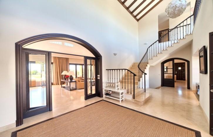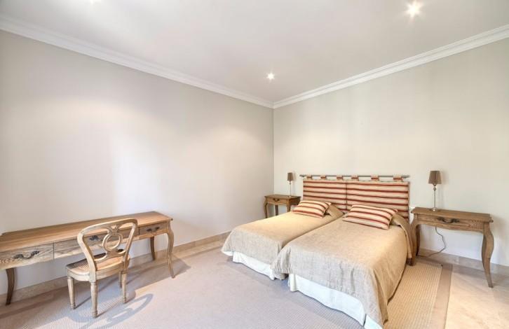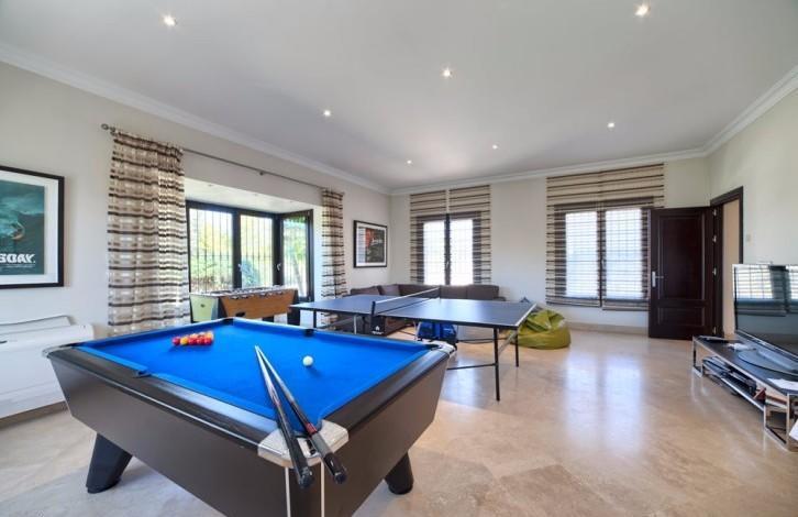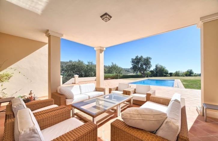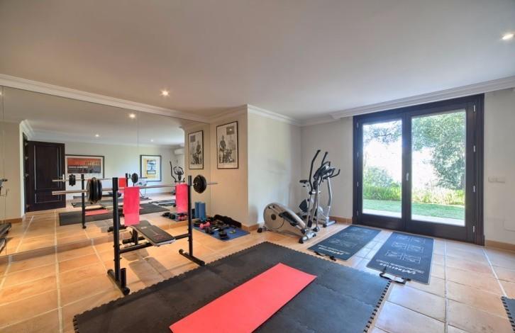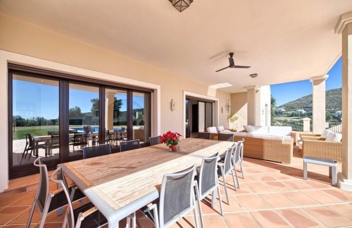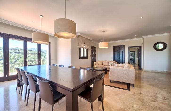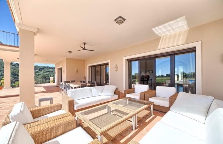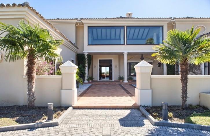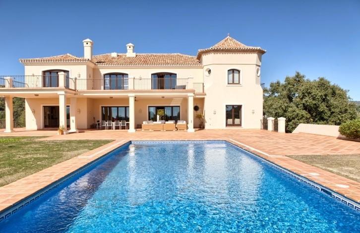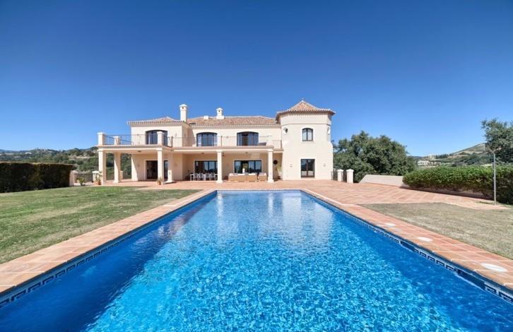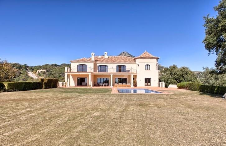 Stylish Villa with large grounds and beautiful views of the coast and the Mediterranean sea! Closed urbanization with 24 hour security in a quiet and private place, near which is located the Golf club, Marbella Club Golf and stables. A 5-minute drive from the beach and town. First floor: large living room with fireplace, TV room, dining room, open plan and fully equipped kitchen, entertainment area, 3 guest bedrooms. Direct access to the covered terrace, garden and pool. Upper floor: bedroom with dressing room, 3 additional guest bedrooms and a study. Lower floor: separate staff quarters and garage for 4 cars.