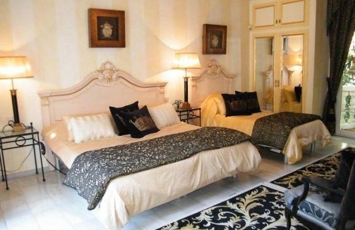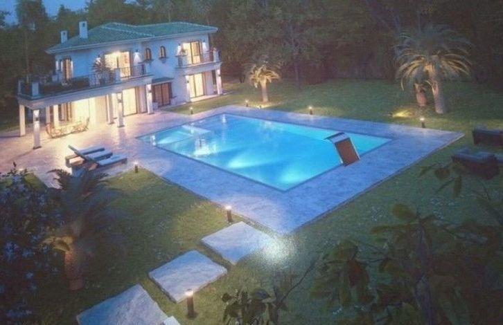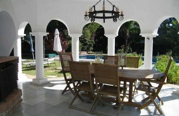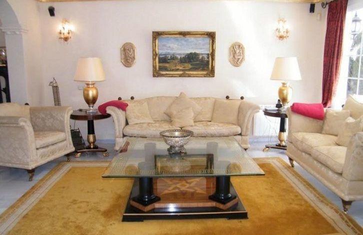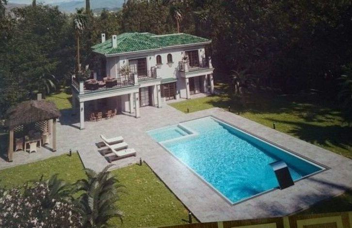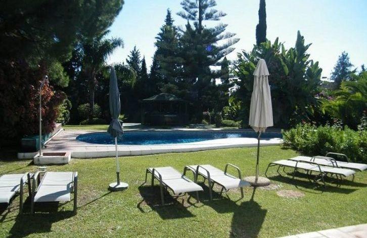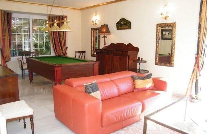 Beautiful villa near Aloha and golf courses, on a double plot overlooking a mature garden. Classic style on 2 levels. Living room overlooking the covered terrace and the garden through large windows. Round dining room with French windows, bar and billiard room. Fully equipped kitchen, utility room. Upper floor with 4 bedrooms with bathrooms, fitted wardrobes and a private terrace. Basement with an extra bedroom that could be turned into a cinema. Parking for 2 cars. Garden with barbecue, a large swimming pool and a gazebo for dinners in the open air. There is a ready project for a brand new boutique hotel. Ideal location in the most popular area, very close to Puerto Banus, beaches, many restaurants, cafes and other facilities.