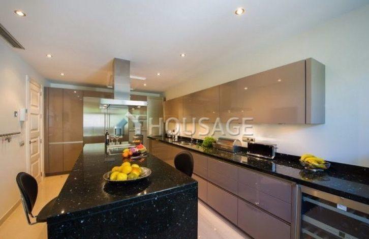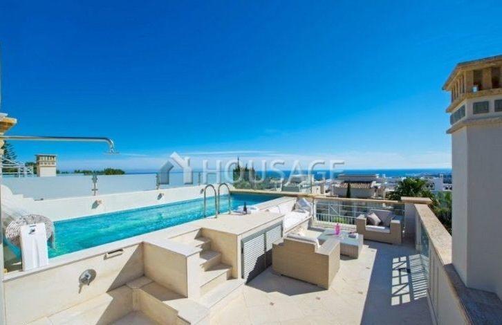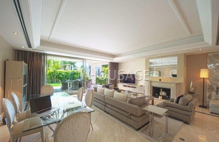Corner townhouse in the Sierra Blanca area in Marbella, very close to the city center. Finishing of the highest quality, marble floors, beautiful hall with stairs and private elevator. On the main floor there is a very large and bright living room with a dining area that leads to a covered terrace and a private garden. The kitchen is fully equipped with Gaggenau appliances, there is a guest toilet. The first floor consists of three good sized bedrooms, including the main one with its own bathroom. The upper level is a fantastic solarium with a small heated pool and a large terrace perfect for barbecue and relaxation. Stunning views in all directions, Mount La Concha and the Mediterranean Sea. Lower level: two bedrooms plus an office or cinema room, sauna and lots of storage space. This level also leads to two private garages.
