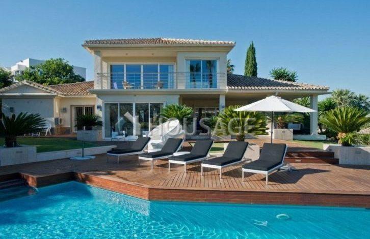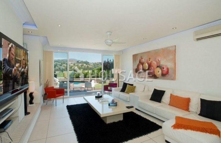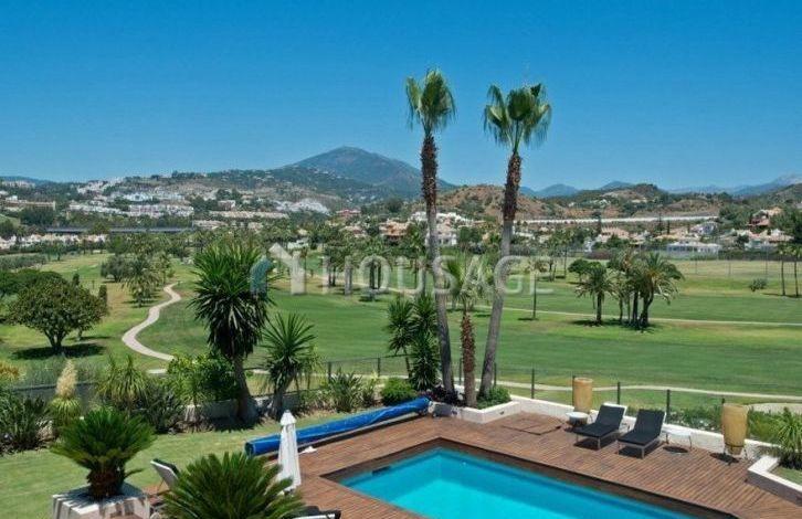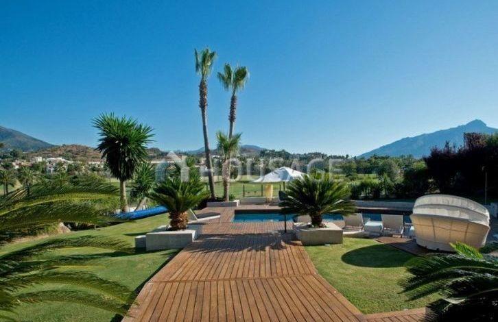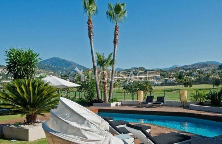 Spacious modern renovated villa, first line of golf, south-west orientation, with magnificent views of the golf course, within walking distance of Los Naranjos Golf Club. Located in a cul-de-sac, a very quiet and secluded place. The house has an entrance hall, a living room with direct access to the garden and to the swimming pool, dining room, fully equipped open plan kitchen, guest toilet, four bedrooms with bathrooms. Upper floor: master bedroom with bathroom. Garage and awning. In total, the villa has 5 bedrooms, 6 bathrooms and 1 toilet. The house was built in 2000 and renovated in 2014. There is a swimming pool (Private), a garage (Private) and a garden (Private). Area: 331 m2, on a plot of 1880 m2, 120 m2 terrace. This property has the following characteristics: fully equipped kitchen, close to shops, close to town, fireplace, marble floors, satellite TV, storeroom, alarm, dining room, barbecue, security, private terrace, lounge, near amenities, golf course views , Heated floor (throughout the territory), close to transport. The complex is closed for the night. Also there is air conditioning, garden view, pool view, close to golf, optional - furniture, in excellent condition.