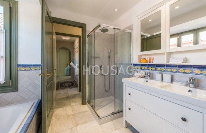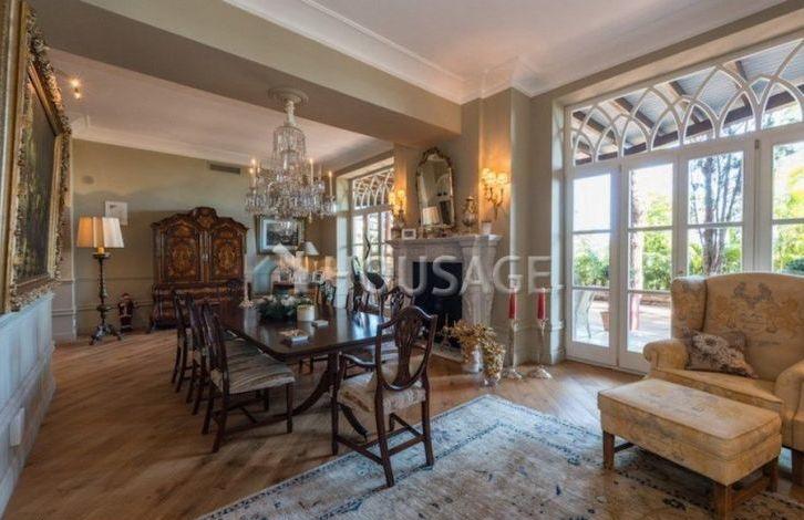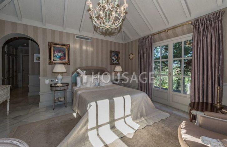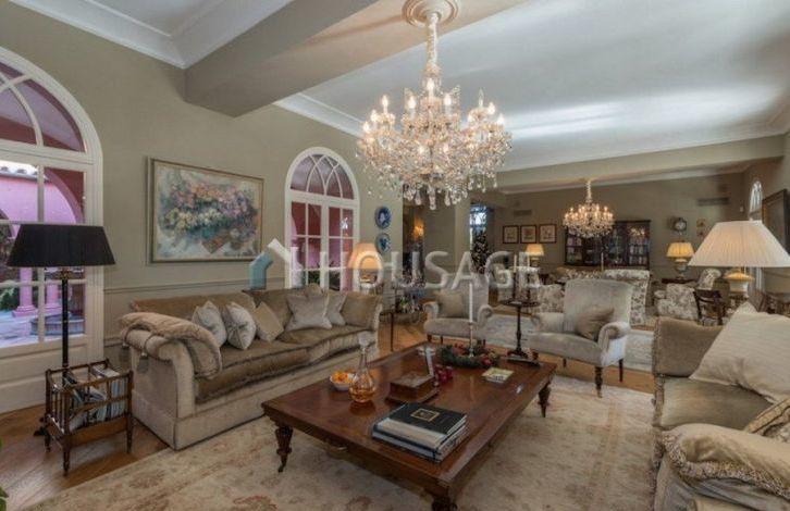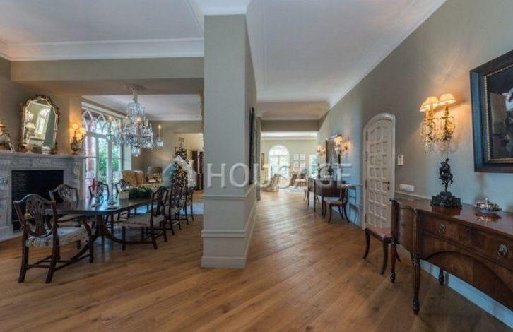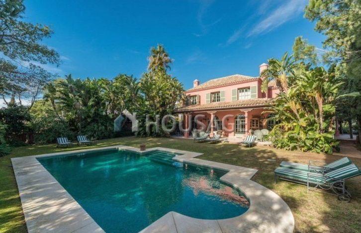 Close to the beach and all amenities. Entrance through the patio, a huge living and dining room with high ceilings and fireplace, fully equipped kitchen, study, bedroom with bathroom and four guest bedrooms with en-suite bathrooms. From the living room and kitchen direct access to the lush garden and swimming pool. Canopy for 3 cars, air conditioning, parquet and marble floors, alarm system.