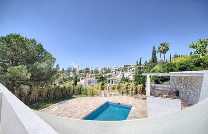 The modern south side villa with five bedrooms is located in the country club of Marbella, in an exclusive cottage village in Nueva Andalucia near three golf courses and within easy reach of shops and numerous restaurants. The apartment consists of: a spacious entrance hall, a living room with a dining area and direct access to the sunny covered terrace, a swimming pool and a large landscaped garden. On the ground floor there is an office, a guest toilet and a fully equipped modern designer kitchen. On the top floor is the main bedroom with fireplace and bathroom and three more bedrooms, two of which have direct access to the terrace on the top floor. There is a garage and a separate storage room. OBJECT NUMBER ON HOUSAGE: 208174