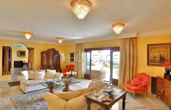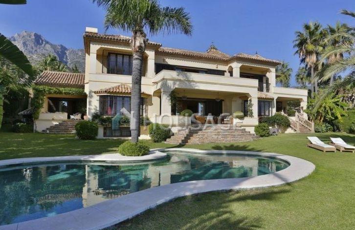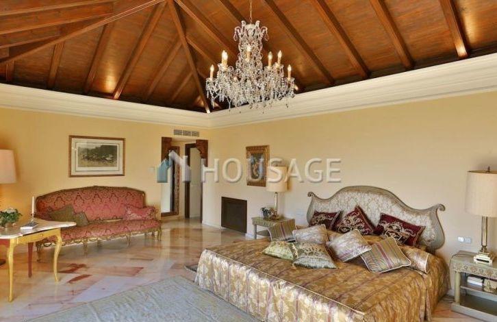 Elegant villa is located in the prestigious closed residential area of the Sierra Blanca. A unique location, just a few minutes from the center of Marbella and the famous Puerto Banus in one of the most sought after areas of Marbella. It is executed in classical Mediterranean style, with a fine kind on mountain La Concha and the sea aside Gibraltar and Northern Africa. The villa offers an impressive lobby with a staircase leading to the first floor. On the first floor is a spacious living room with a marble fireplace with access to a fantastic covered terrace and a beautiful landscaped garden with an outdoor heated pool and a beautiful gazebo. Separate dining room, library with fireplace, fully equipped kitchen with breakfast area and exit to summer terrace, two large bedrooms with bathrooms and guest toilet. The main bedroom is located on the top floor with an arched wooden ceiling, a private terrace, a dressing room and a large marble bathroom with a Jacuzzi. Another 2 bedroom suites can also be found at this level. In the basement you will find a separate apartment with a living room, an open-plan kitchen and a bedroom.