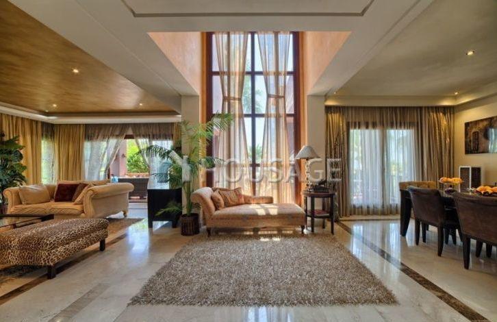 This stunning condominium villa settled in a gated and secure community of just 18 villas in the most prestigious area of the Golden Mile, near the Sierra Blanca at the foot of Mount La Concha. The center of Marbella and Puerto Banus can be reached in a few minutes. The community offers lush tropical gardens and a communal pool. The villa is built on 3 levels, on the first floor there is a spacious living and dining room, fully equipped and equipped kitchen, a bedroom with a bathroom and a guest toilet. From the living room you have direct access to the terrace, garden and swimming pool, where you have a beautiful view of the sea. On the first floor there are 3 bedrooms with bathrooms, one of which is one bedroom. On the ground floor is a large entertainment area, an additional bedroom, an office, a laundry room and a garage for 4 cars. All levels of the house are connected by a lift.