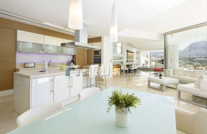 This stunning hotel is located in one of the best positions in Nueva Andalucia with a breathtaking view of the golf course, the mountains and the sea. Just five minutes drive from the lively Puerto Banus and a short walk from local restaurants and amenities. Outstanding architectural design of the famous architect Tabord Angel. Built on 3 levels with a ground floor entrance hall, living room with fireplace and double ceiling height dining area, fully equipped modern kitchen with breakfast area, separate ticket office and laundry. All the main directions will lead to an open area and an extended terrace with a heated infinity pool-Infiniti. On the upper level there are two bedrooms, including a master suite with expensive Italian built-in wardrobes. The first floor consists of a fully automated home theater, a sports hall with a shower, a covered terrace with built-in / in the living room and a guest room, 2 double bedrooms, a bathroom and a private terrace. Garage for 3 cars.