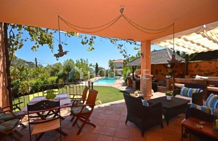 Located in the well-groomed coast of Marbesa urbanization. A short walk from the wide sandy beaches and just a short drive from amenities where you can find supermarkets, shops, pharmacies and restaurants. This rustic-style villa with a south orientation is built on three levels with mature gardens, a private heated pool and a barbecue area. On the first floor you will find a living room with a dining area with access to the veranda. Open kitchen with kitchen island and a breakfast area and one bedroom with bathroom. On the top floor there are 4 bedrooms and 2 bathrooms, from which the master bedroom has a bathroom and access to the solarium, which offers stunning views of the sea and mountains. On the lower level you will find a fully equipped 1 bedroom guest apartment with a kitchen, living room and separate entrance. The villa also has a garage for 2 cars.
