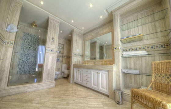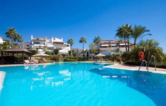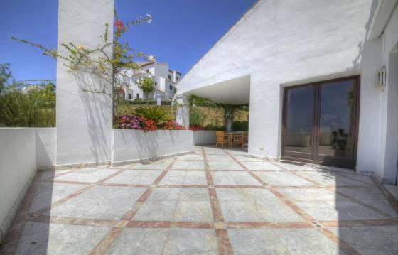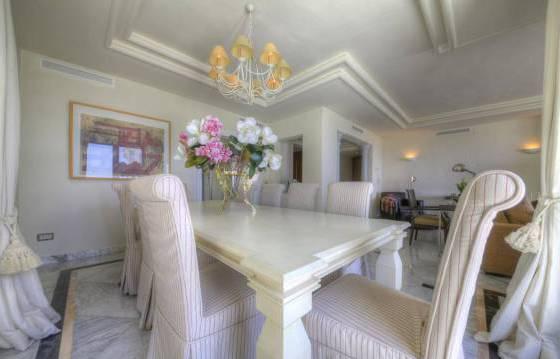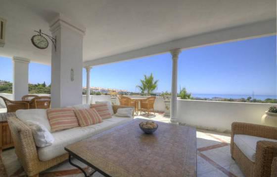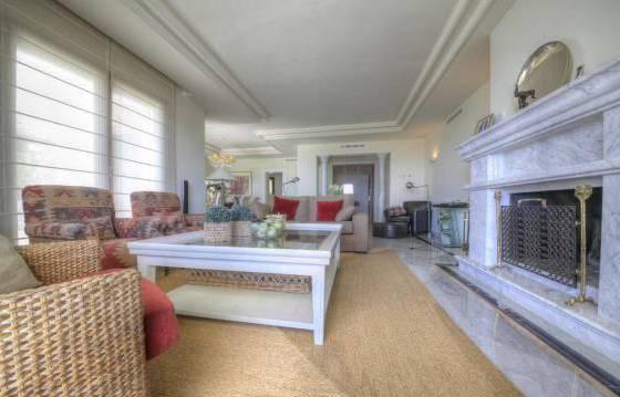 Monte Paraiso Country Club. Super penthouse with 3 bedrooms, 3 bathrooms -in a prestigious community near the center of Marbella and a gorgeous view of the sea. This is a prestigious gated community with 24-hour security and a beautiful garden with 2 swimming pools. In addition, there is a concierge, a 9-hole golf course and club with heated indoor pool, gym, sauna and steam bath. Penthouse very well located, is focused on the south side, you can enjoy the sun with its large terraces that offer views of the more. Vhod in a penthouse on the elevator that goes straight to the apartment. The penthouse includes: entrance, corridor with fitted wardrobes, guest WC, large living room with dining area, including marble flooring, an open fireplace and direct access to the main terrace. Kitchen with Siemens appliances, including built-in oven, microwave, stove, dishwasher and refrigerator American type freezer. Utility room with washing machine and dryer. Terrace. Master bedroom with access to the terrace. Dressing room with fitted wardrobes Turkish bath, and a bathroom with shower. 2 bedrooms with fitted wardrobes and a private terrace. Main terrace with seating and dining area, partly covered. Jacuzzi. On the upper level is a living room with open plan kitchen, including granite countertops, built-in stove, dishwasher and fridge freezer. 3 bedroom with fitted wardrobes and a bathroom with shower. Parking in the garage (for 3 cars) and storage room, marble floors, underfloor heating, hot and cold air conditioning. The area of