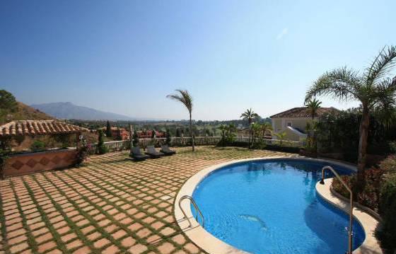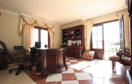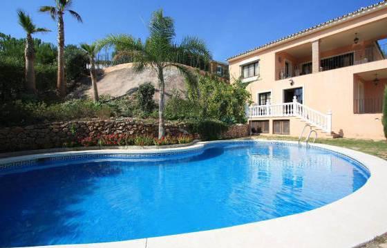 Beautiful family villa, situated on a large plot with stunning panoramic views of the coastal mountains and the golf course. The house has been completely renovated and features a picturesque garden. The house has 6 bedrooms and 6 bathrooms, spacious living room and a terrace. This is a great family home situated on a large plot with great views. Luxury bathrooms and a fully equipped kitchen, and we recommend inspection of the interior. The house is also located an entrance hall with guest toilet, large living room with fireplace and access to a covered terrace, separate dining room and kitchen, built-in furniture, granite worktops and appliances including oven, hob, microwave, dishwasher and refrigerator American type freezer, 2 bedrooms, both with en suite bathrooms. Large guest bedroom with bathroom and access to the terrace. On the lower level is the master bedroom with fitted wardrobes and a bathroom and two bedrooms with fitted wardrobes and en suite bathrooms. Large living room and family room with access to the pool and garden. Utility room with washing machine and dryer. Warehouses. Delightful gardens with panoramic views, and an orchard. Large swimming pool, terrace with open views and a small house for a barbecue. Private entrance, parking for several cars. Hot and cold air conditioning, high-quality marble floors, underfloor heating in the bathrooms, plus solar heating, hot water. Area 464 m2 Floor 358 m2 terrace 25 m2