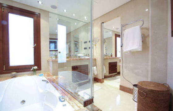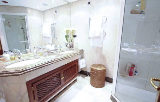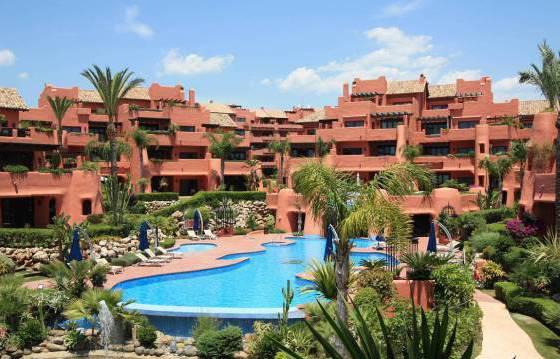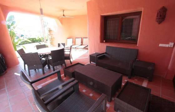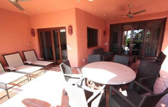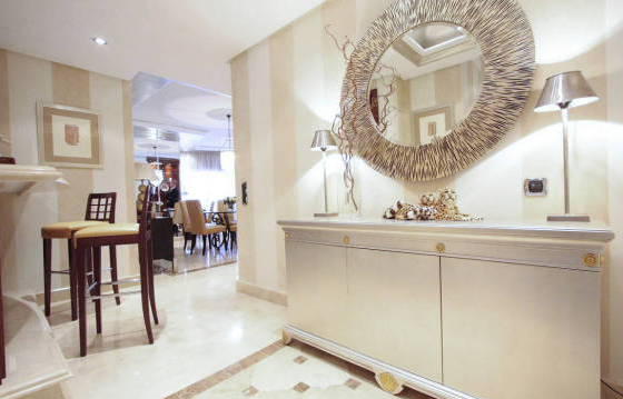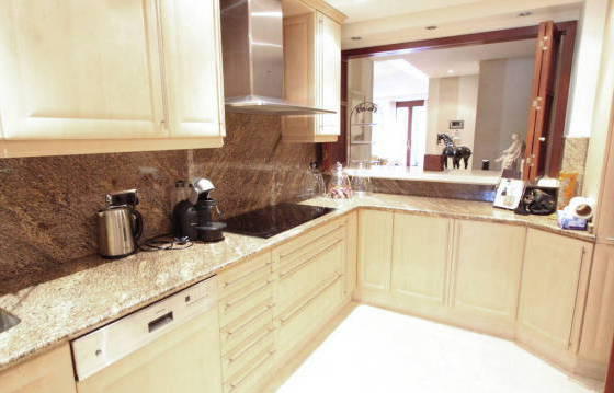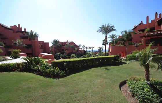 Luxury apartment on the first line beach complex, with 3 bedrooms, 3 bathrooms, located on the second floor with a partial sea view. Torrebermejo this beautiful beach resort, located on the New Golden Mile, within walking distance of all amenities. The community has 24-hour security and well maintained landscaped garden with swimming pool and direct beach access. There is also a heated indoor pool, gym, sauna, solarium, etc. This stunning apartment offers very spacious rooms, and also includes:. Entrance hall, spacious living / dining room equipped with bookshelves and a luxury kitchen in American style. Kitchen with granite worktops and Siemens appliances including an oven, microwave, stove, dishwasher and fridge freezer. Utility room with washing machine and dryer Siemens. Master bedroom with walk-in closet and a luxurious bathroom. The guest bedroom has a dressing area and a luxurious bathroom. Below you will find a second guest bedroom with shower room. There is a partly covered terrace, which can be accessed from the master bedroom and living room. From this terrace there is direct access to a beautifully landscaped garden and pool. Separate kitchen with a barbecue on the terrace, 1 garage parking space and storage room. Marble floor with underfloor heating. Hot and cold air conditioning. Area 174 m Terrace 51kv. m.