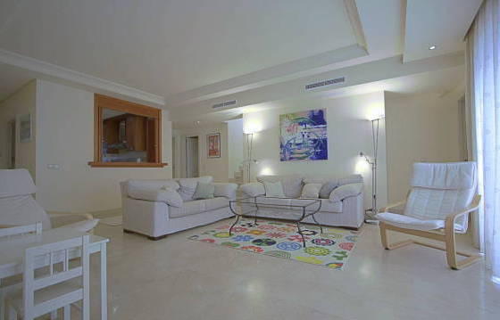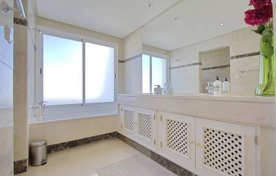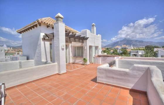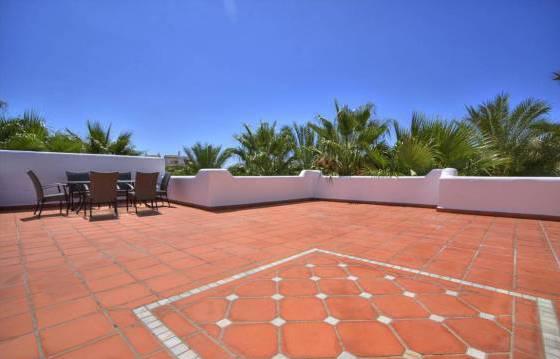 Excellent duplex penthouse with 3 bedrooms, 3 bathrooms, a short walk from Puerto Banus, beach and all other amenities. The exceptionally large terrace on two levels with partial sea views. Well maintained gated community with lush subtropical gardens and a lovely pool. It is very spacious and bright duplex penthouse, located in a secure gated community close to the beach and other udobstv. Soobschestva is landscaped, enclosed area. The apartment includes an entrance hallway, spacious living and dining area with fireplace and access to an unusually large terrace with open views and sun all day. Fully equipped kitchen with granite countertops and built-in Bosch appliances including oven, hob, dishwasher and fridge freezer. Utility room with washing machine. Master bedroom with dressing room, fitted wardrobes and an en suite bathroom, 2 bedrooms with fitted wardrobes and en-suite shower komnatoy. Glavnaya bedroom is located on the top floor and is equipped with a private bathroom with bath and shower. Next, a very large terrace with a partial sea view and a built-in jacuzzi. Parking space in the garage and a storage room. Cream marble floor. Hot and cold air conditioning. Area 170 m2 Terrace 200 m2