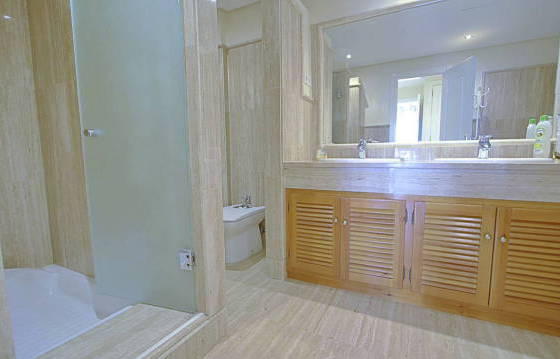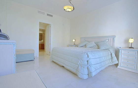 Exceptionally spacious duplex apartment on the second floor with 3 bedrooms, 3 bathrooms in an exclusive community in Loas Monteros Playa. Near the beach (200 m), with a very large terrace overlooking the private garden and the West, with security 24 hours. This beautiful apartment is located on the first floor and was originally built as two apartments but converted into one large suite with 3 bedrooms and 3 bathrooms. Accommodation comprises: entrance hall with guest toilet, spacious living room with glass doors to the terrace, separate dining area. Fitted kitchen with granite work tops and built-in household Bosch appliances, including oven, microwave, stove, dishwasher, fridge freezer and washing machine. The master bedroom with direct access to the terrace and a dressing room with a variety of built-in wardrobes, bathroom with bath and shower. 2nd bedroom with terrace, large fitted wardrobes and a bathroom with bath and shower. 3rd bedroom, also with access to the terrace, bathroom with large shower. Very large terrace with electric blinds with wind sensors, private garden and direct access to shared gardens and swimming pool. 2 parking spaces in the garage, 2 storage rooms, hot and cold air conditioning, marble floors, underfloor heating in the bathrooms. The area of