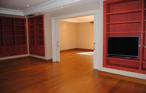 Первый этаж: прихожая с высокими деревянными потолками ручной работы, гостиная, столовая, кухня, библиотека, бильярдная, кинозал, туалет для гостей, кабинет, гардеробная и три террасы.